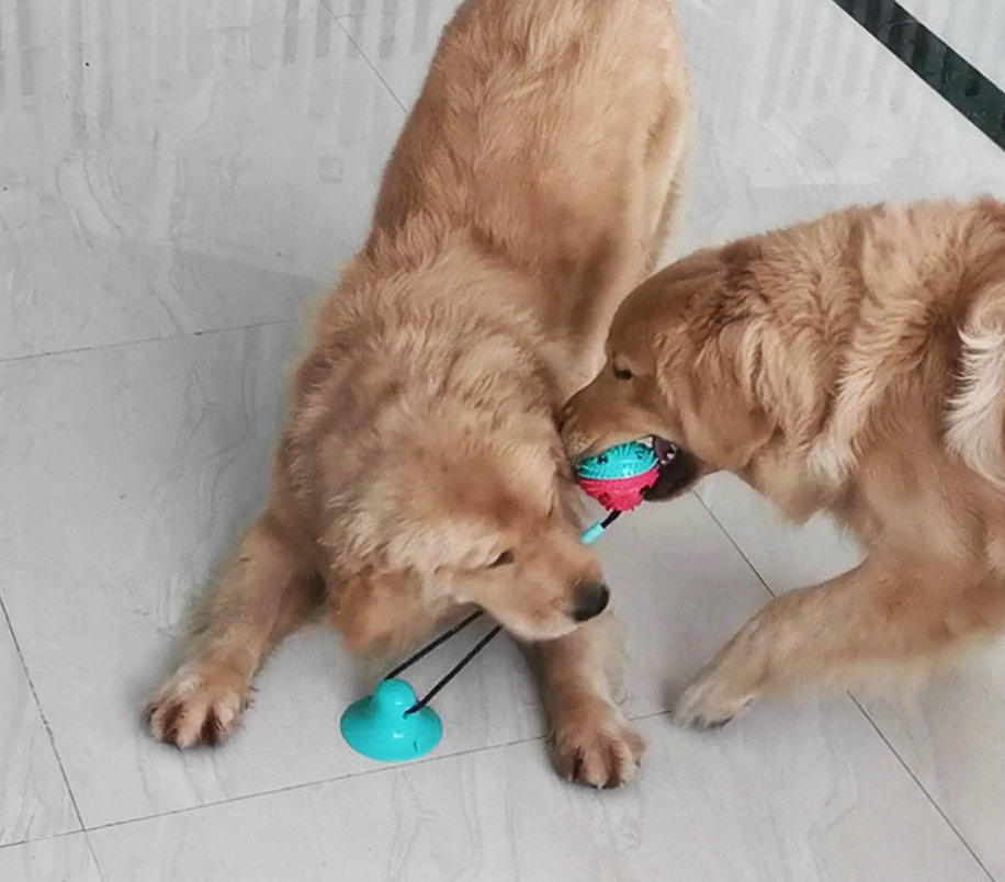 Home > Multifunction Pet Molar Bite Toy with Suction Cup Interactive Dog Rope Toys Self-Playing Rubber Ball Cleaning Teeth Treat Dispensing Ball