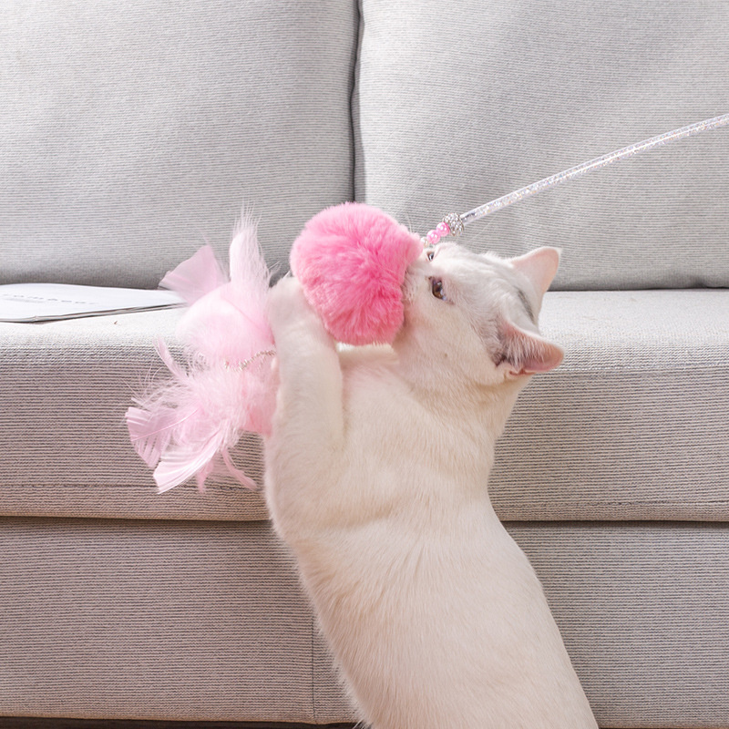 Cat Teaser Fluffyball Feather Wand Stick Funny Interactive Pet Cat Toys Pet Kitten Play Interactive Toy