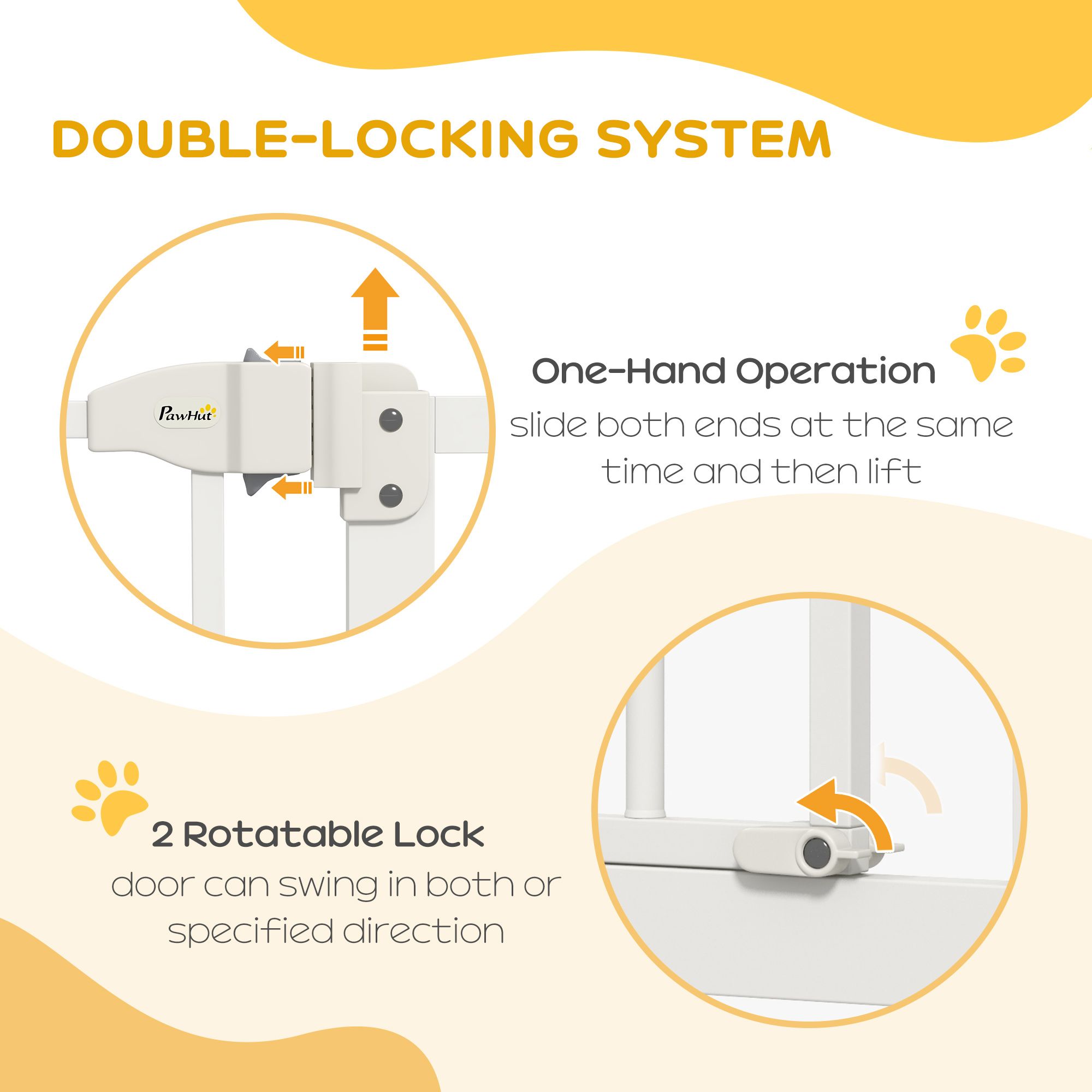 Keep pets away from specific places easily with this safety gate from PawHut. It's made from metal for strength, and its width can be adjusted between 29.1" (74 cm) and 39.4" (100 cm), meaning it will fit properly in door frames and other passages. Fitted with a middle door to pass when needed, the slide-and-lift handle is easy to use so you can walk through quickly. Two rotating locks on the bottom allow the door to opened both ways, with a double locking mechanism to finish for extra safety.