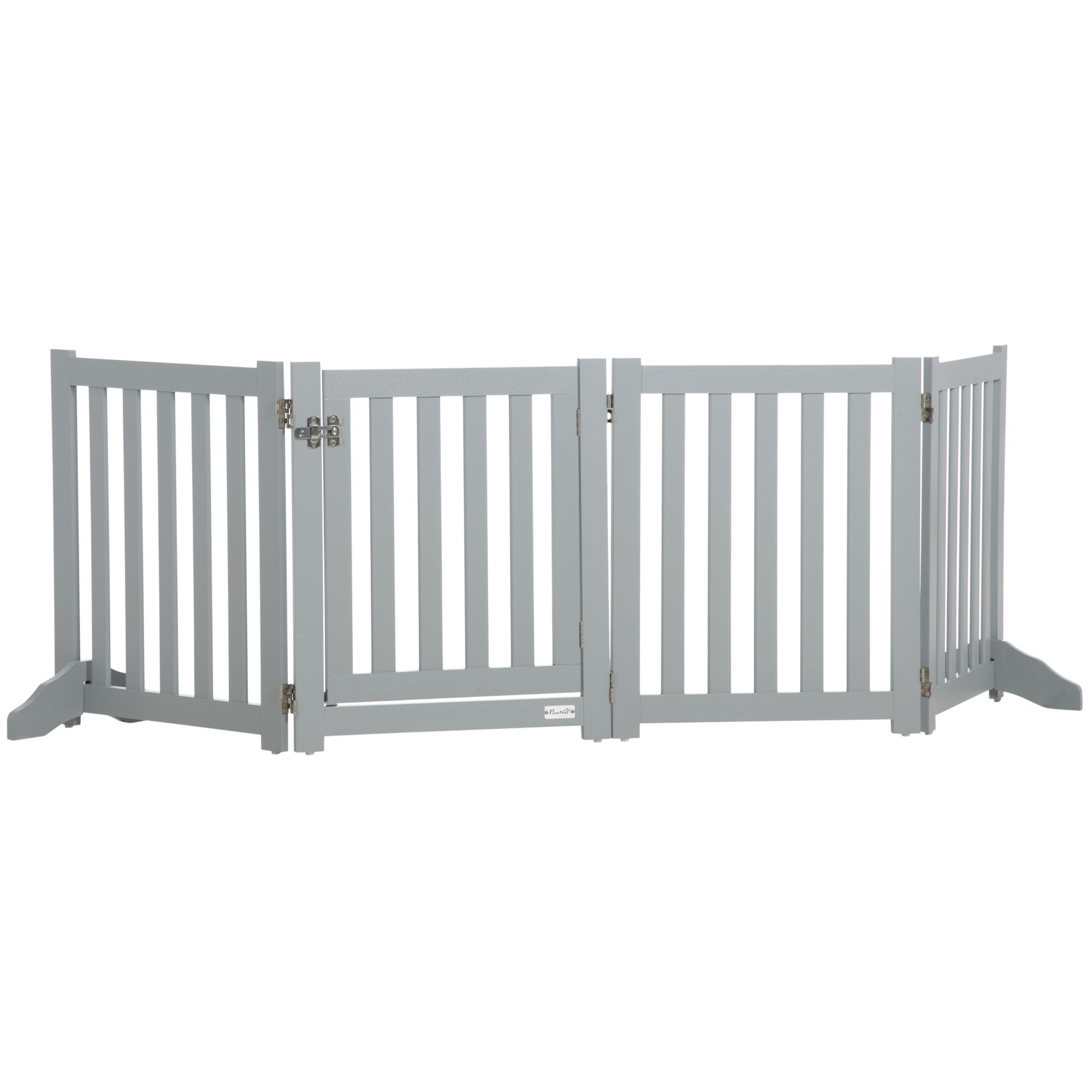 PawHut pet gates for dogs are a great way to keep your pets in an area while matching your home's style and modern design. This door has four flexible panels secured with hinges, which you can mould into different sizes, suitable for areas of various sizes. It has a double-sided folding system, allowing U/Z folding for easy storage. Constructed of MDF, suitable for daily use. It includes a pass-through door for easy entry and exit.