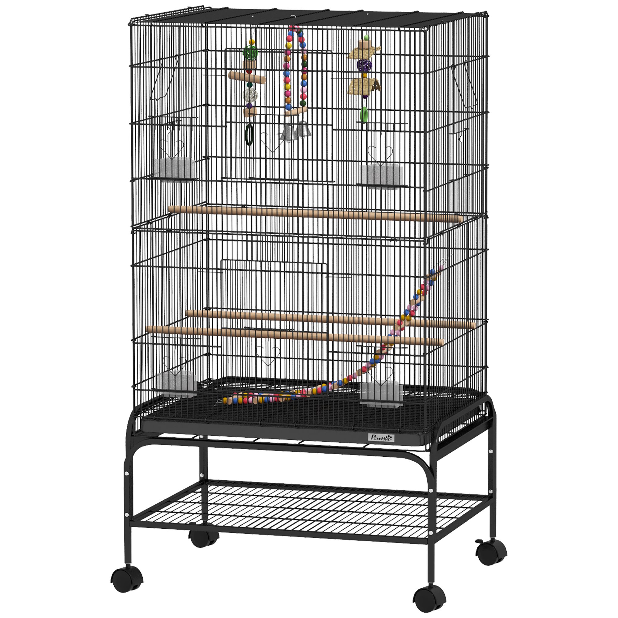 Home > 43" Bird Cage with Rolling Stand, Toys, for Budgies Canaries Black