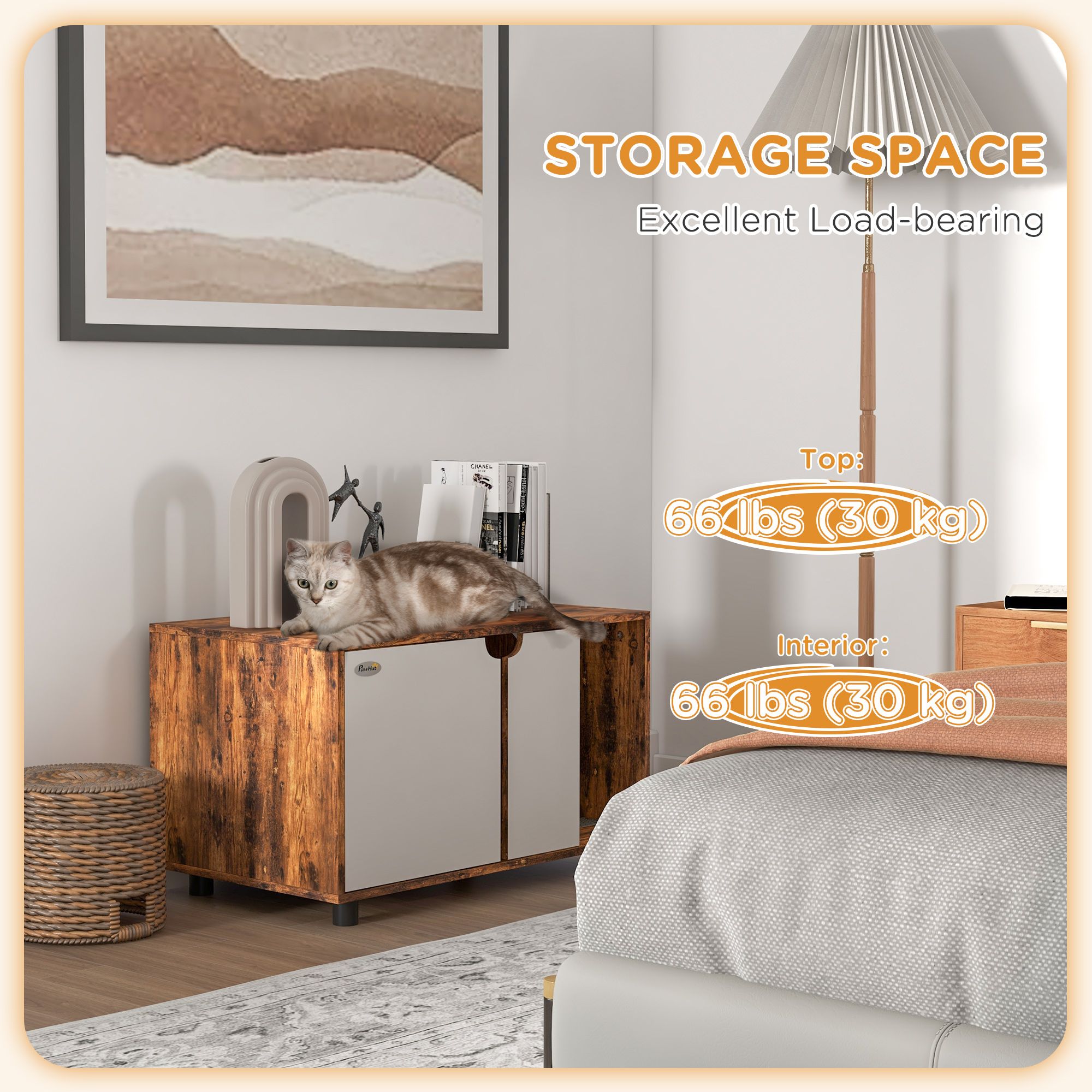 Hidden Cat Litter Box Enclosure with Double Doors and Sand Drain Pad, Rustic Brown
