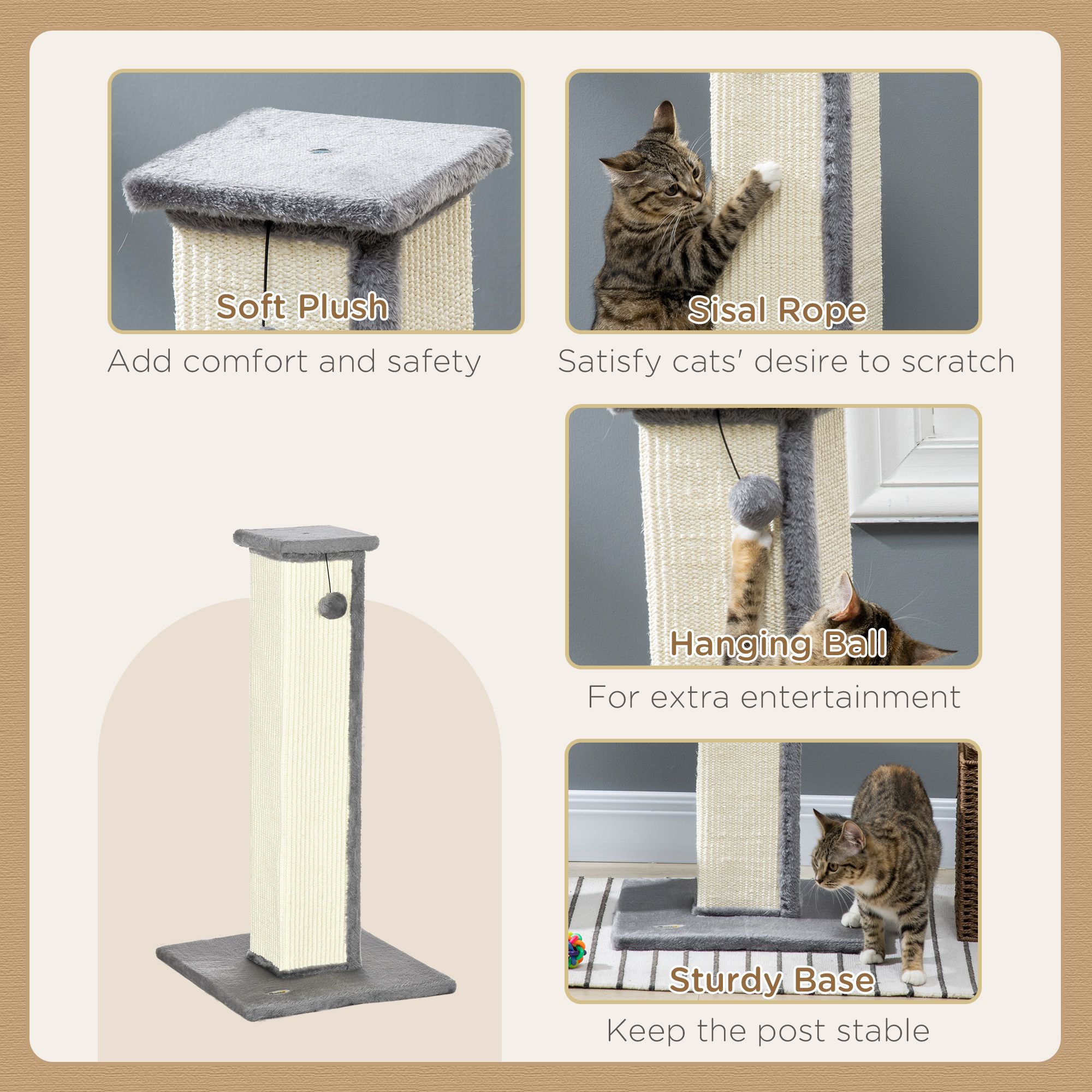 32" Tall Cat Scratching Post for Indoor Cats and Kittens, Sisal Cat Scratcher with Hanging Ball Soft Plush, Grey