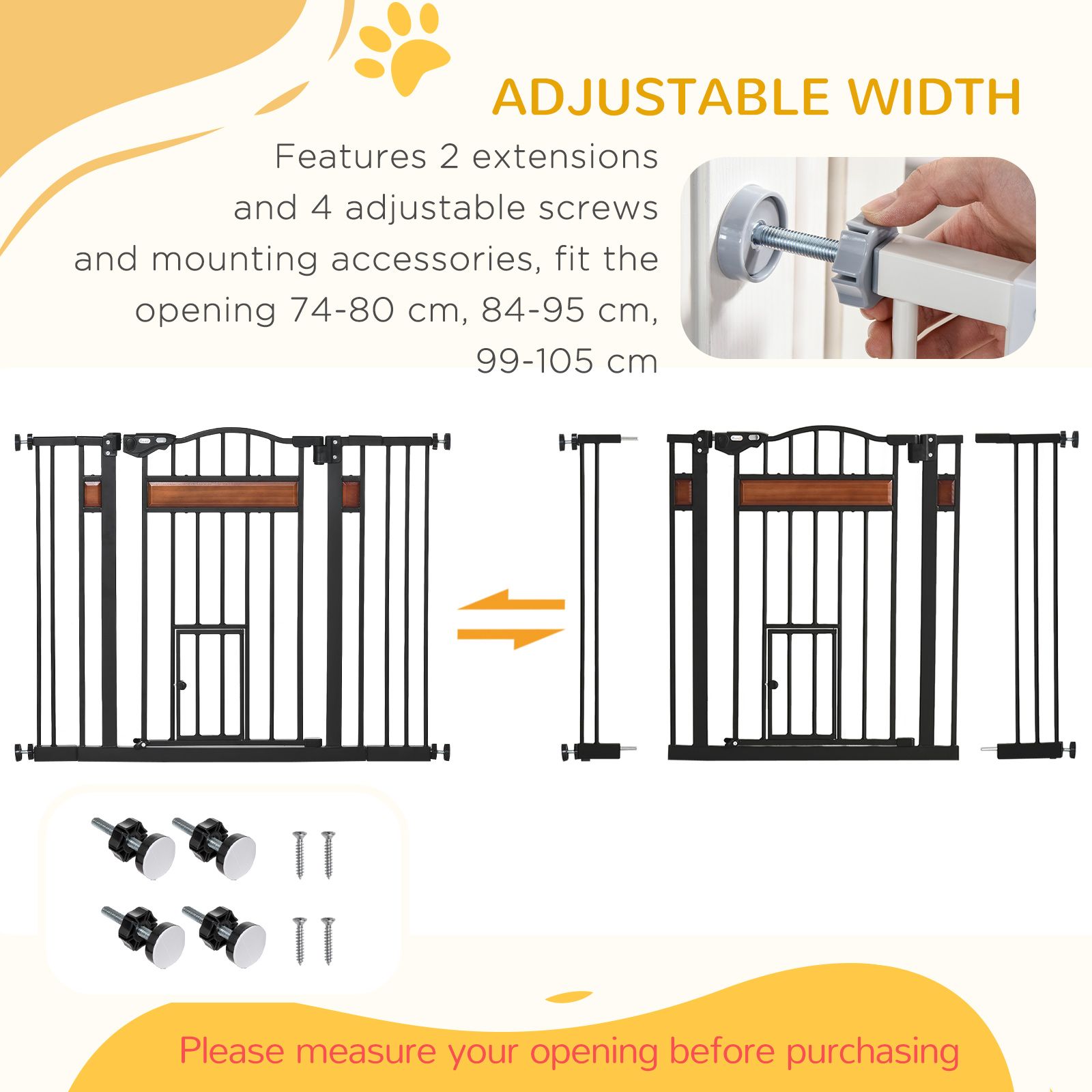 Need to keep pets away from certain places? This PawHut pet gate does the trick. Suitable for hallways, doorways and staircases, with a cat door to separate your cats and dogs. Its steel frame stays in shape when in use, whilst the lead-free surface keeps pets safe. Door automatically closes if it's open at less than 90°, so it isn't a problem if left slightly open. Accessories are included, making it easy to assemble – you can get your gate up instantly, so pets stop going to restricted areas.