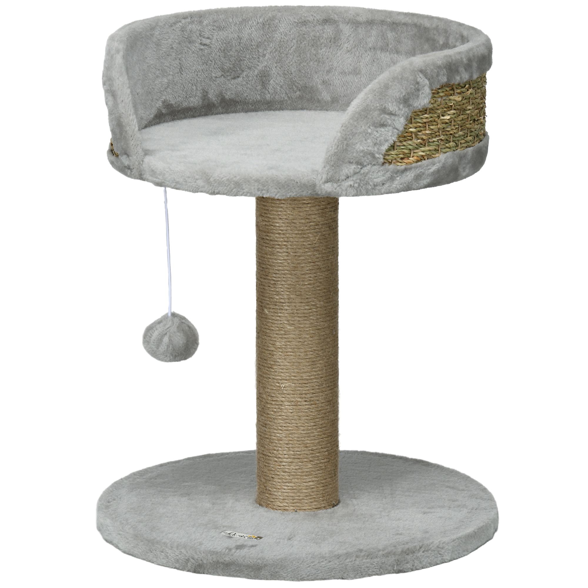 Cat Tree with Scratching Post, Toy Ball, Perch, Small Cat Tower for Indoor Cats - 16" x 16" x 19", Grey