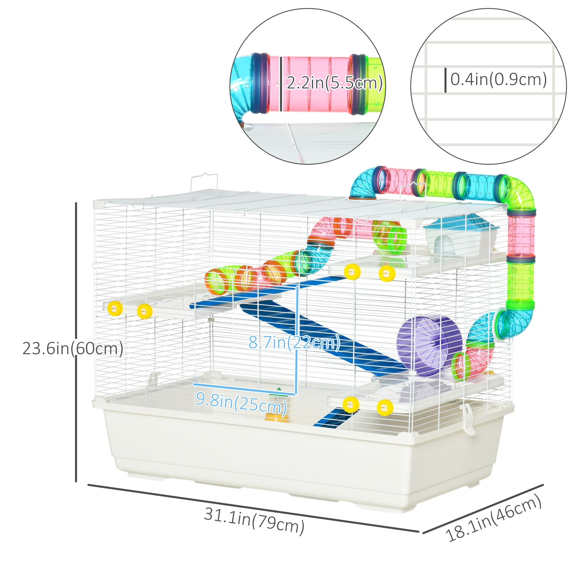 31" Large Hamster Cage, Small Animal House, Multi-storey Gerbil Haven, Tunnel Tube System, with Water Bottle, Exercise Wheel, Food Dish, Ramps, White