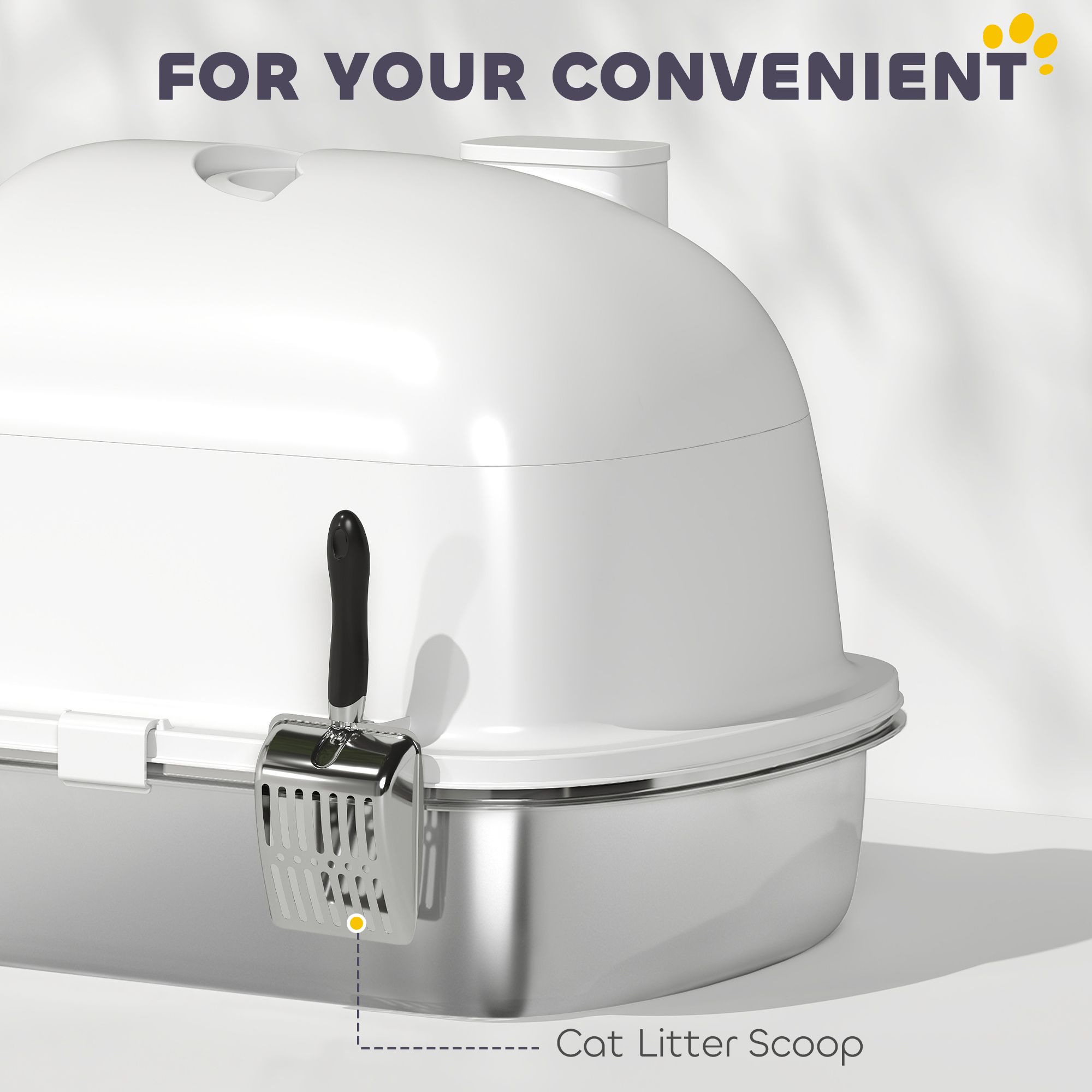 Home > Enclosed Stainless Steel Litter Box, Metal Cat Litter Box with Scoop, Deodorizer Bag, Handle, Easy to Clean