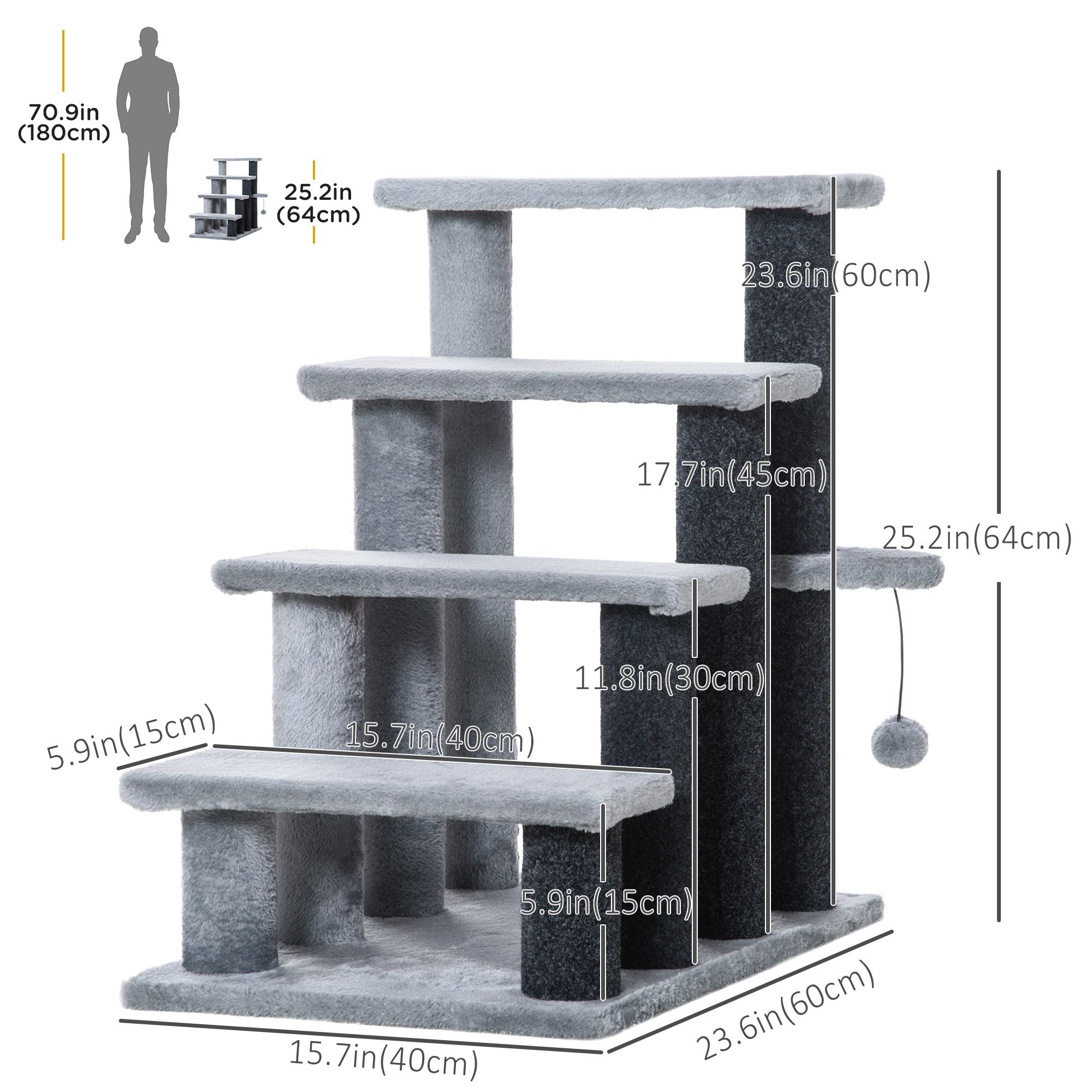 Cat Stairs for Bed, Couch 4 Steps, Small Cat Tree for Indoor Cats with Scratching Posts Toy Ball, 23.5" x 16" x 25"
