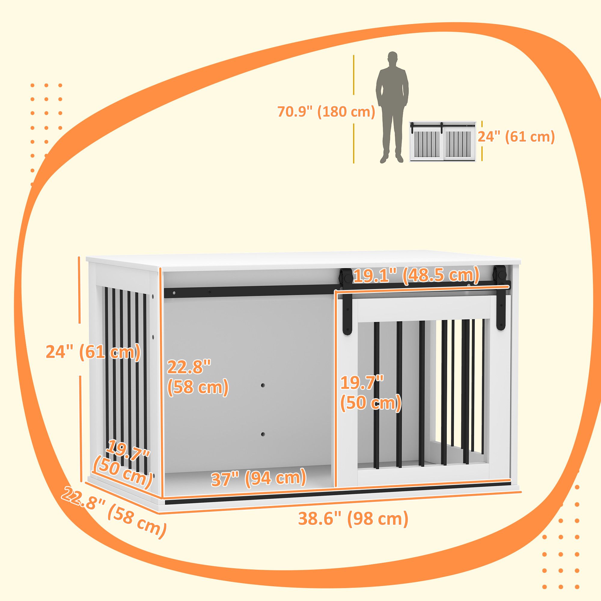 • • A sliding door with a latch ensures the dog's safe inside