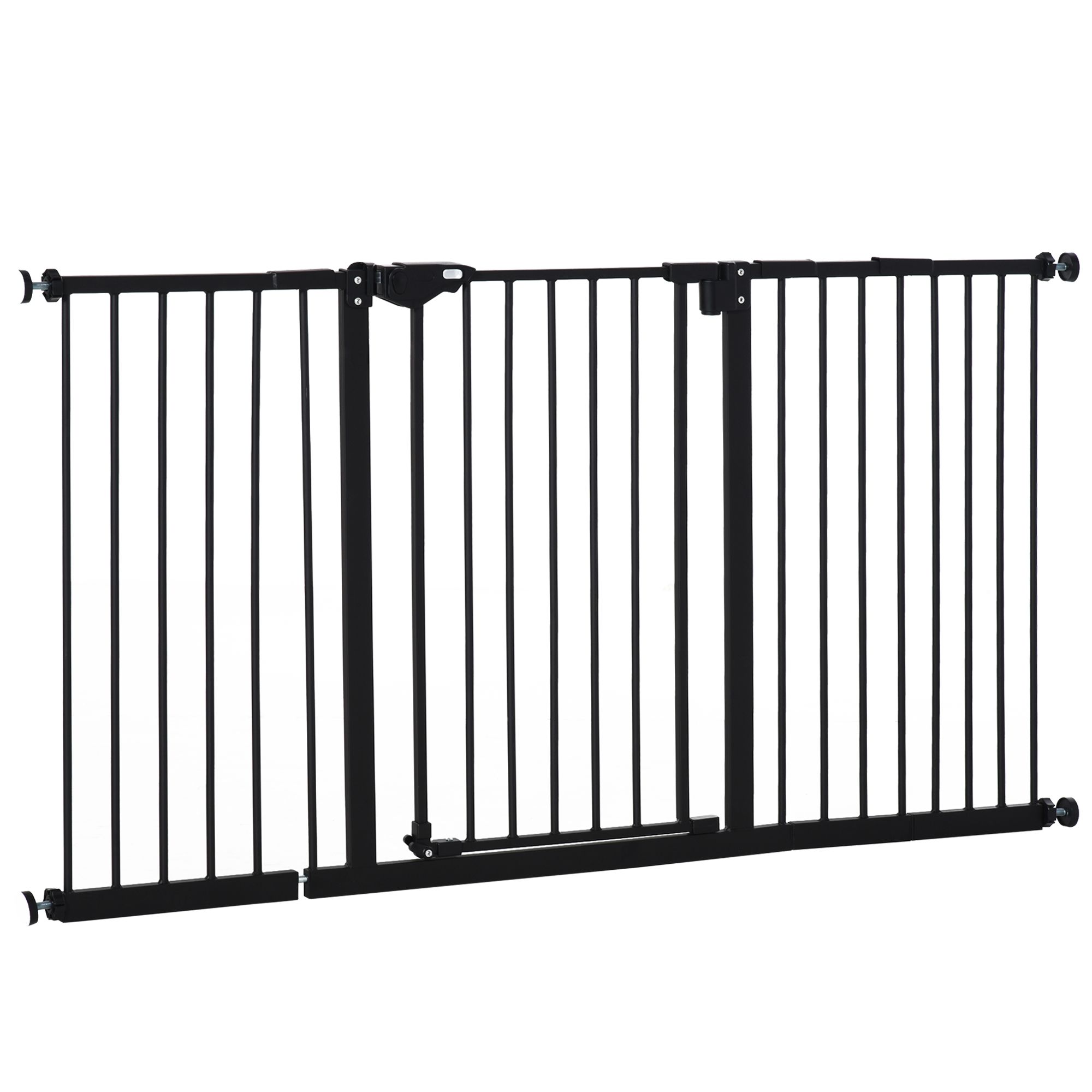 Need to keep pets away from certain places? This PawHut pet gate does the trick. Suitable for hallways, doorways and staircases, the width is adjustable for different sizes. Its metal frame stays in shape when in use, whilst the lead-free surface keeps pets safe. Door automatically closes and locks between 30° and 90°, so it isn't a problem if left slightly open. Accessories are included, making it easy to assemble – you can get your gate up instantly, so pets stop going to restricted areas.