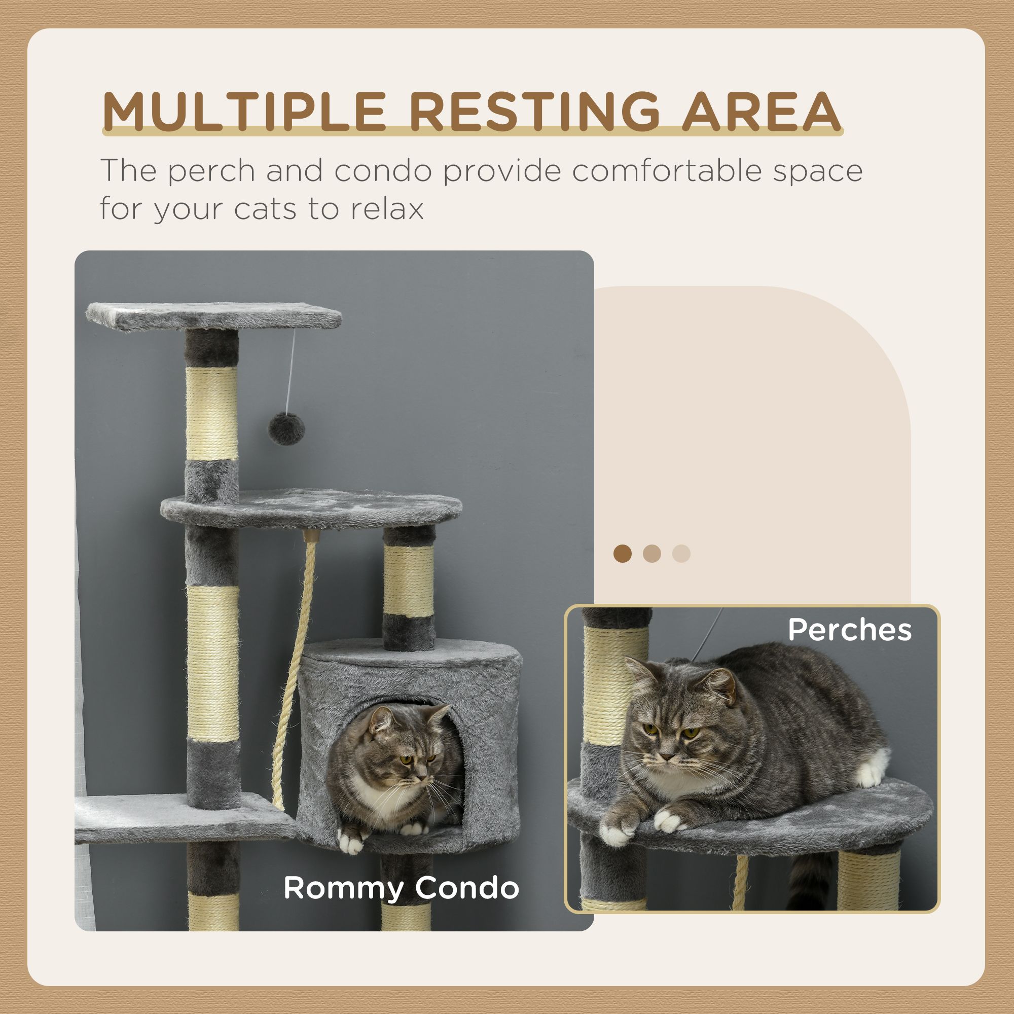 Satisfy your cat's natural instincts safely with this cat tree for indoor cats from PawHut! This kitty tower features natural sisal covered cat scratch post, funny toy on bottom panel, teasing rope, soft and comfortable condo and perches. Cat scratcher benefit both pet and owners by providing someplace to relieve cats' desire to claw and to climb and saving your carpets and household furniture from damage. Rest, play, exercise, your cats can spend all day on the cat playground.