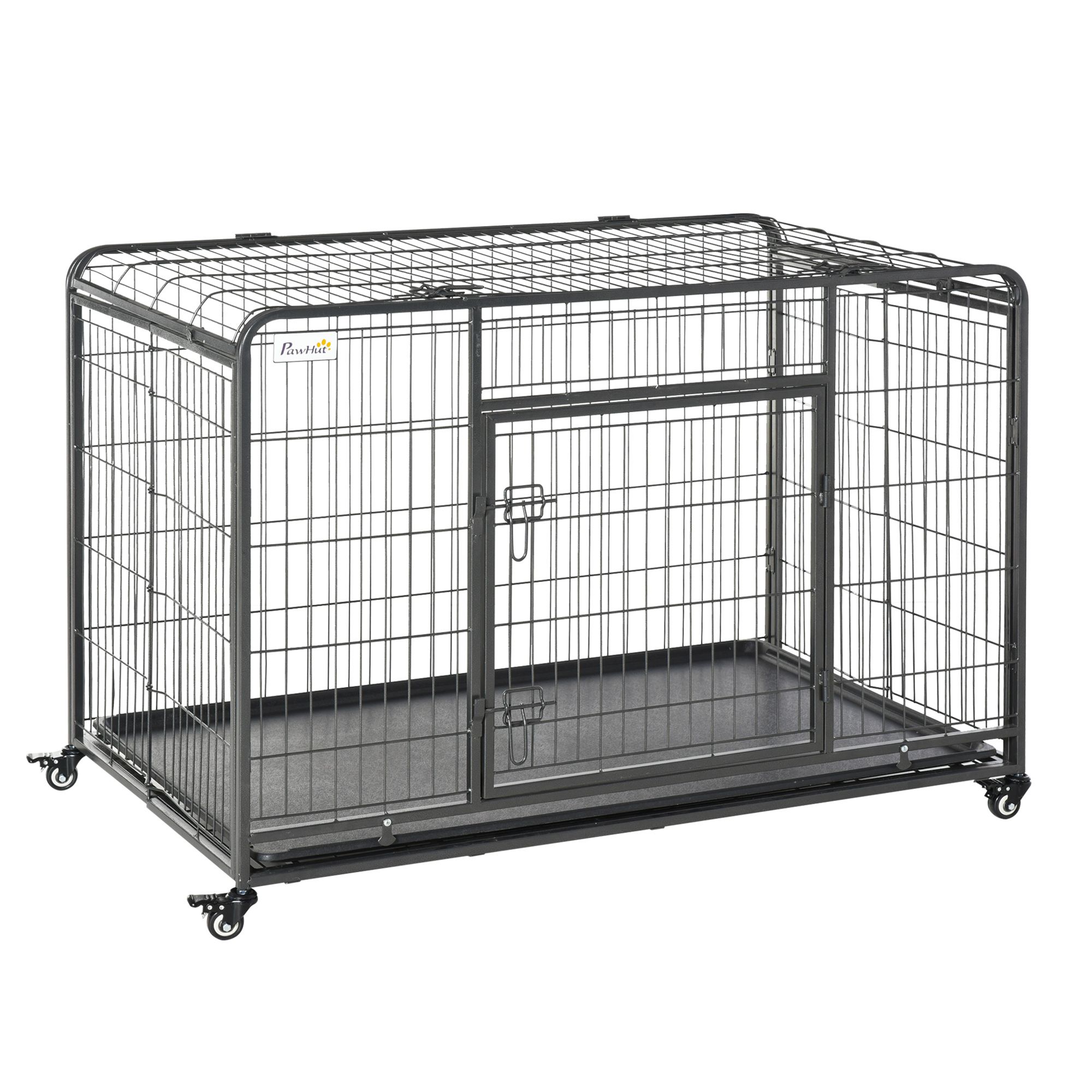This dog crate from PawHut is the comfortable and secure home for your furry friend! With longevity in mind, we made sure to construct the dog kennel of strong metal wire, welded together to prove long-lasting strength. Because of that simple design, the dog cage can easily fold down to a more portable size. This not only helps you move the dog home around, but means it's easy to store when not in use! The crate has four rolling wheels on the bottom for easy movement.