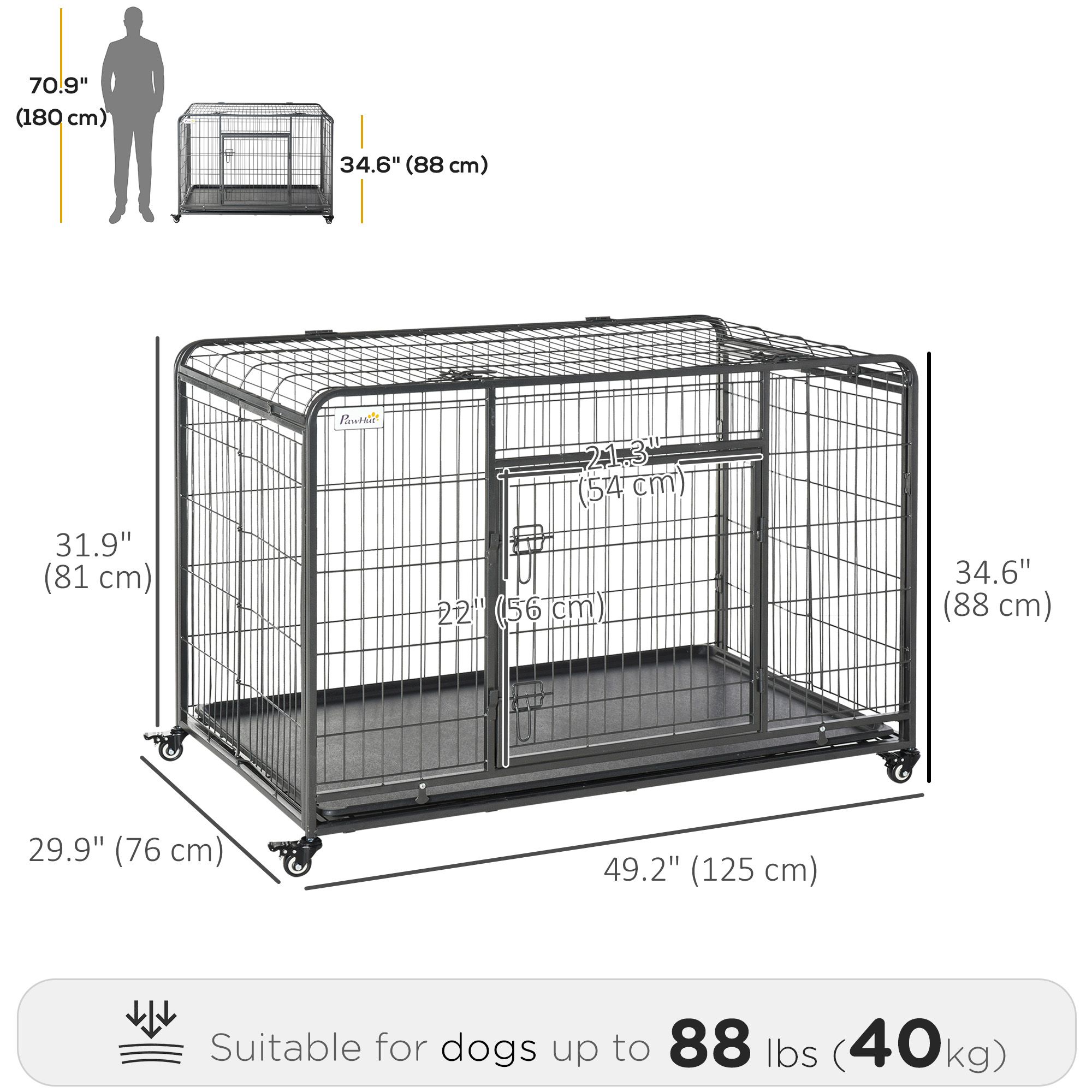 Folding Dog Crate Heavy Duty Cage for Extra Large Sized Dogs with Double Doors, Lockable Wheels Tray, 49" x 30" x 32"