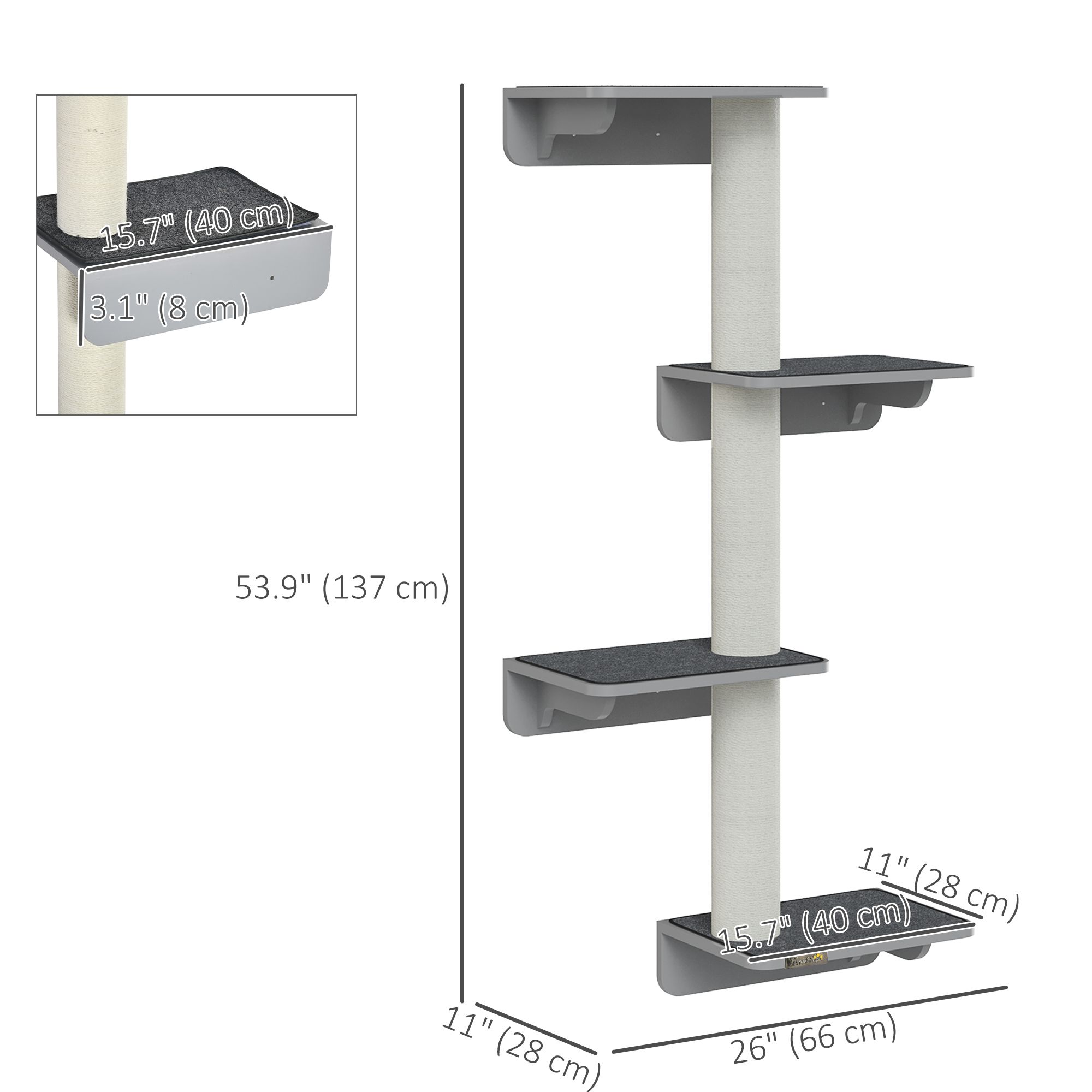 Home > Wall-Mounted Cat Shelf with 4 Platforms and 3 Scratching Posts, Cat Wall Climber for Climbing and Lounging, Light Grey