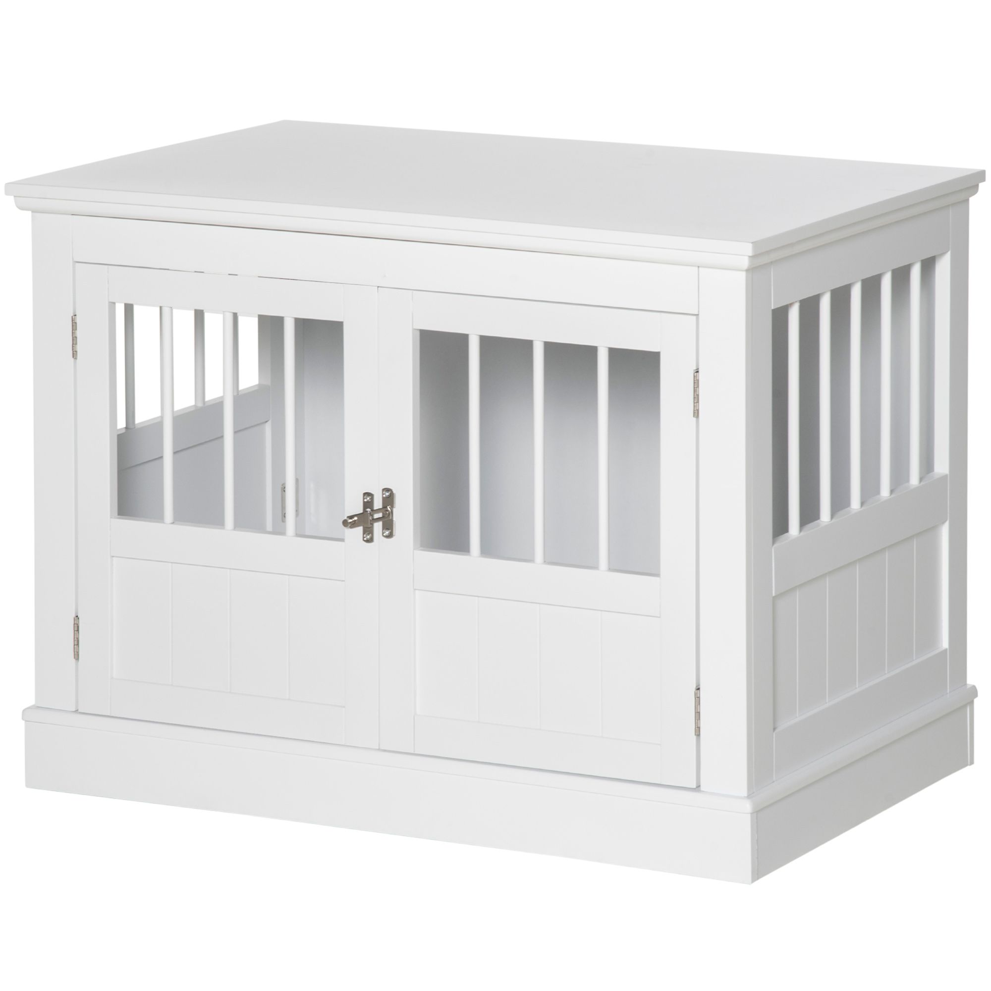 Transform your pet's space with the sleek PawHut Dog Crate Furniture. This stylish piece doubles as an elegant end table, blending seamlessly with your decor while providing a cozy hideaway for your furry friend. Enjoy the practicality of a dog kennel and the aesthetics of modern furniture. Suitable for creating a comfortable and inviting home atmosphere.