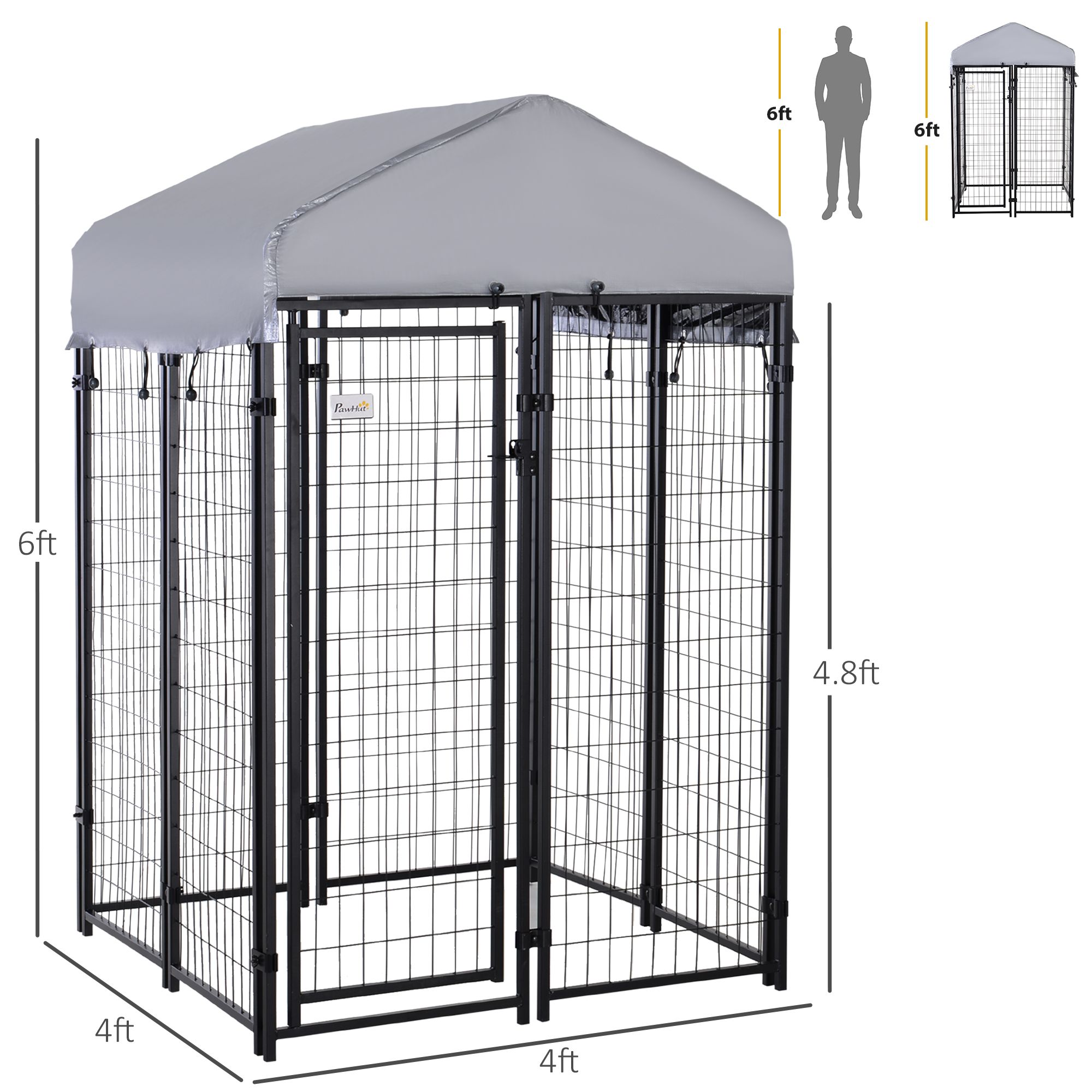 Outdoor Dog Kennel with Roof, 4' x 4' x 6' Heavy Duty Welded Wire Dog Playpen Enclosure with Escape-proof Lock, UV-Resistant & Waterproof Cover