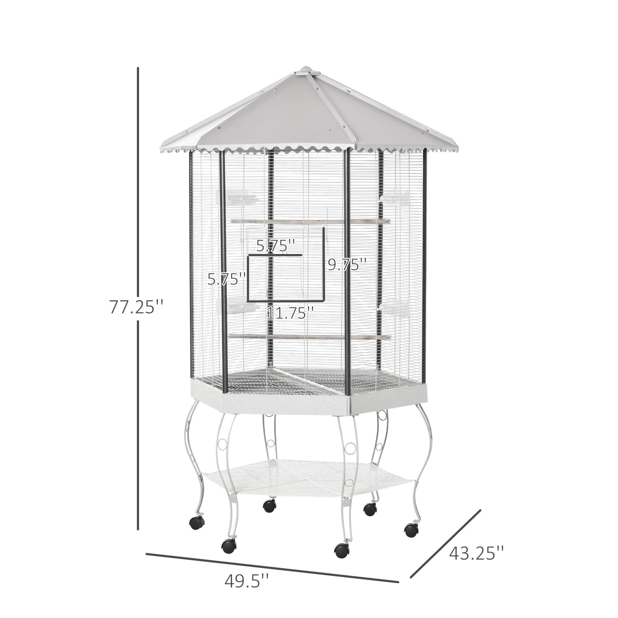 Home > 77" Flight Bird Cage Hexagon Covered Canopy Portable Aviary With Storage