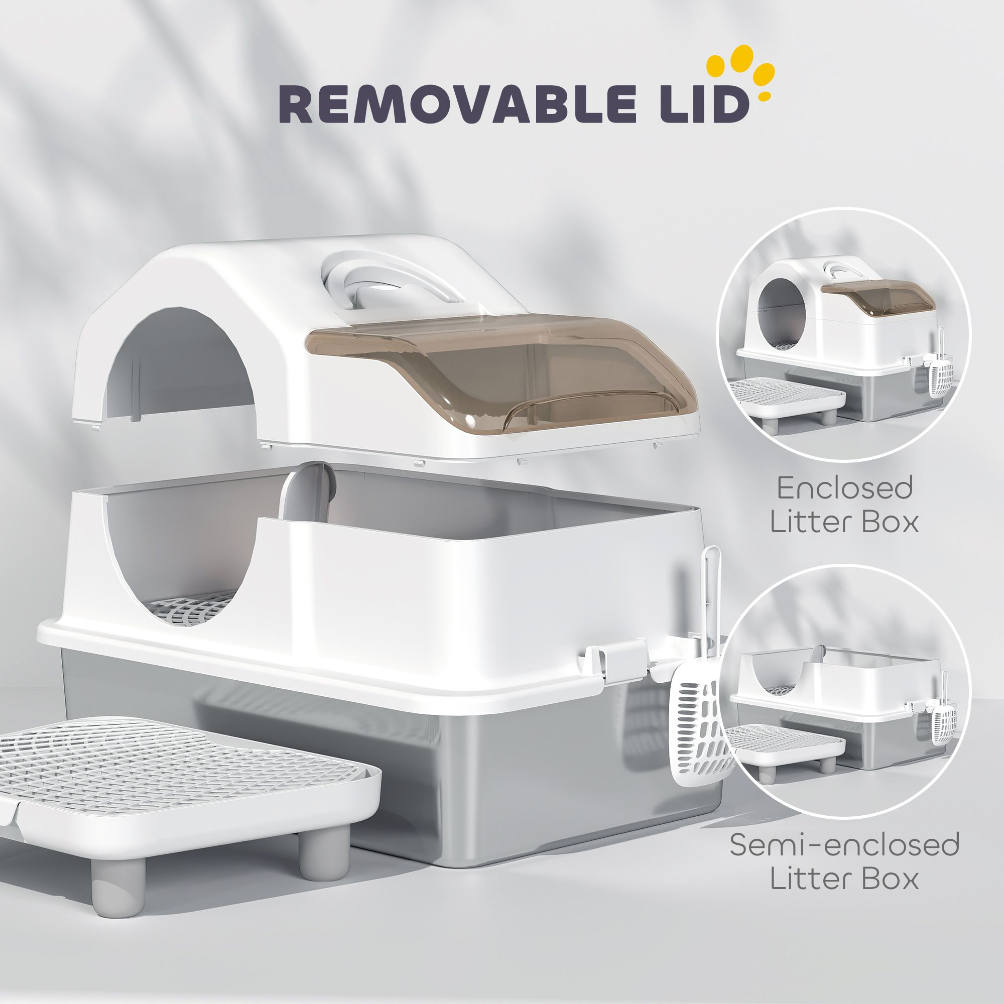 PawHut Stainless Steel Litter Box. Where style meets functionality! Enjoy fresher indoor air with superior odour control, a spacious interior for your cat's comfort, and a hassle-free cleaning experience. The dual sand track also helps keep floors tidy by catching stray litter.