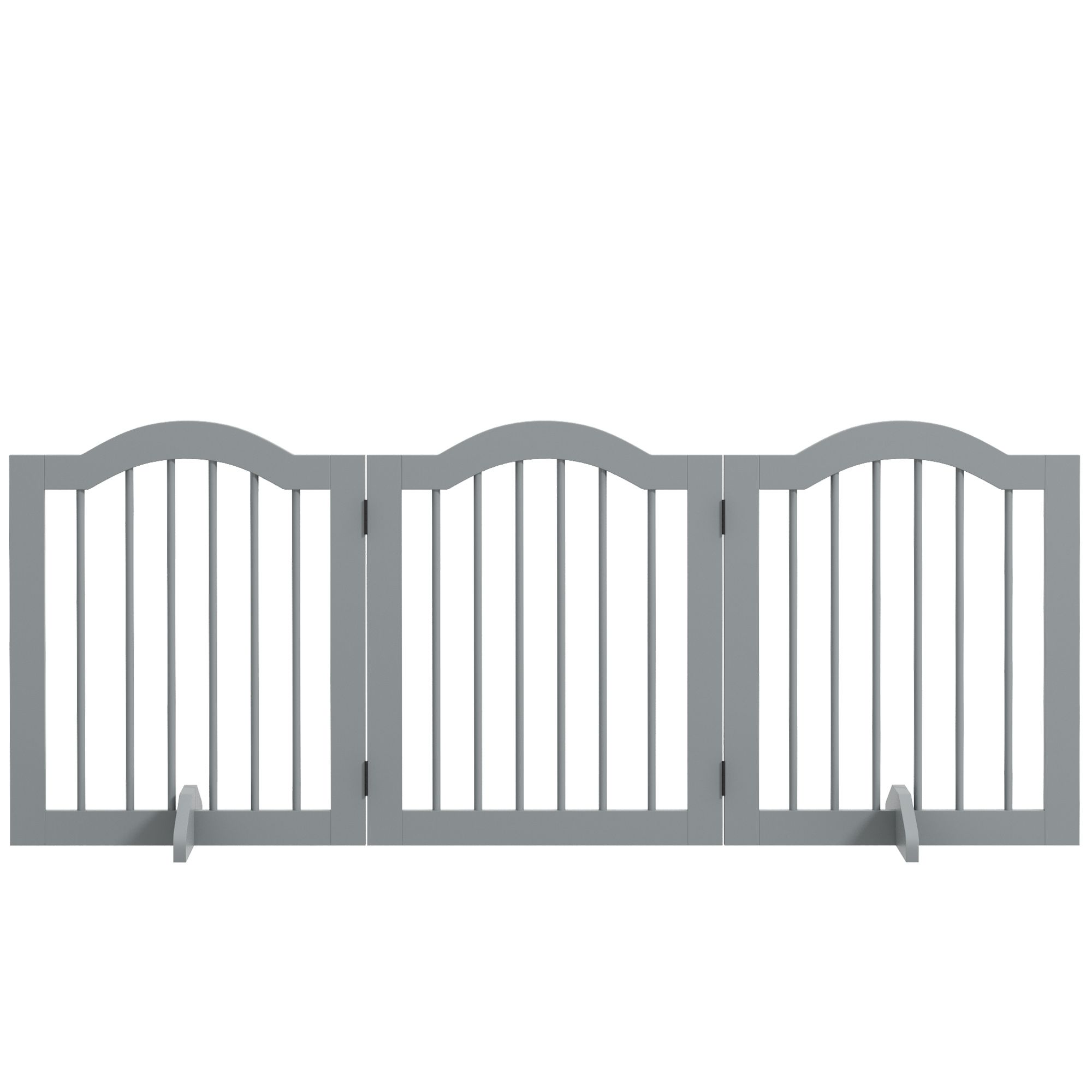 24" Freestanding Pet Gate For Dogs with 2 Support Feet, Light Grey