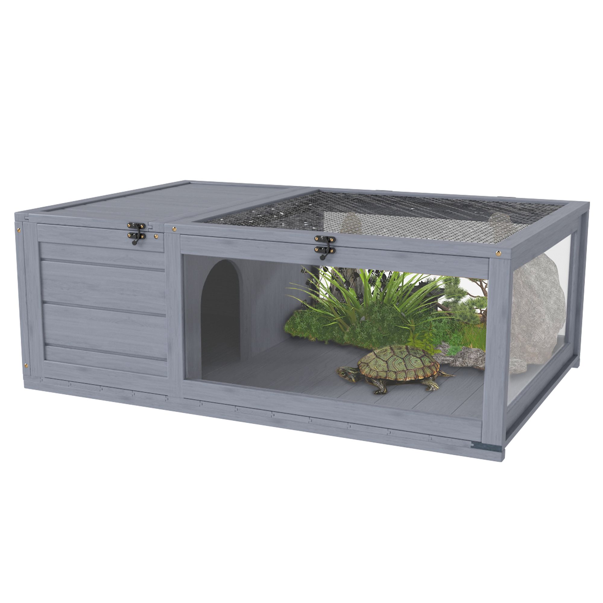 PawHut reptile terrarium is the preferred product for professional turtle breeders. The PawHut Tortoise House features solid wooden walls that provide privacy and security for your pet. This product is suitable for indoor and outdoor use. Keep it outside to provide your pet with sunlight and natural UV rays to promote health and shell growth.