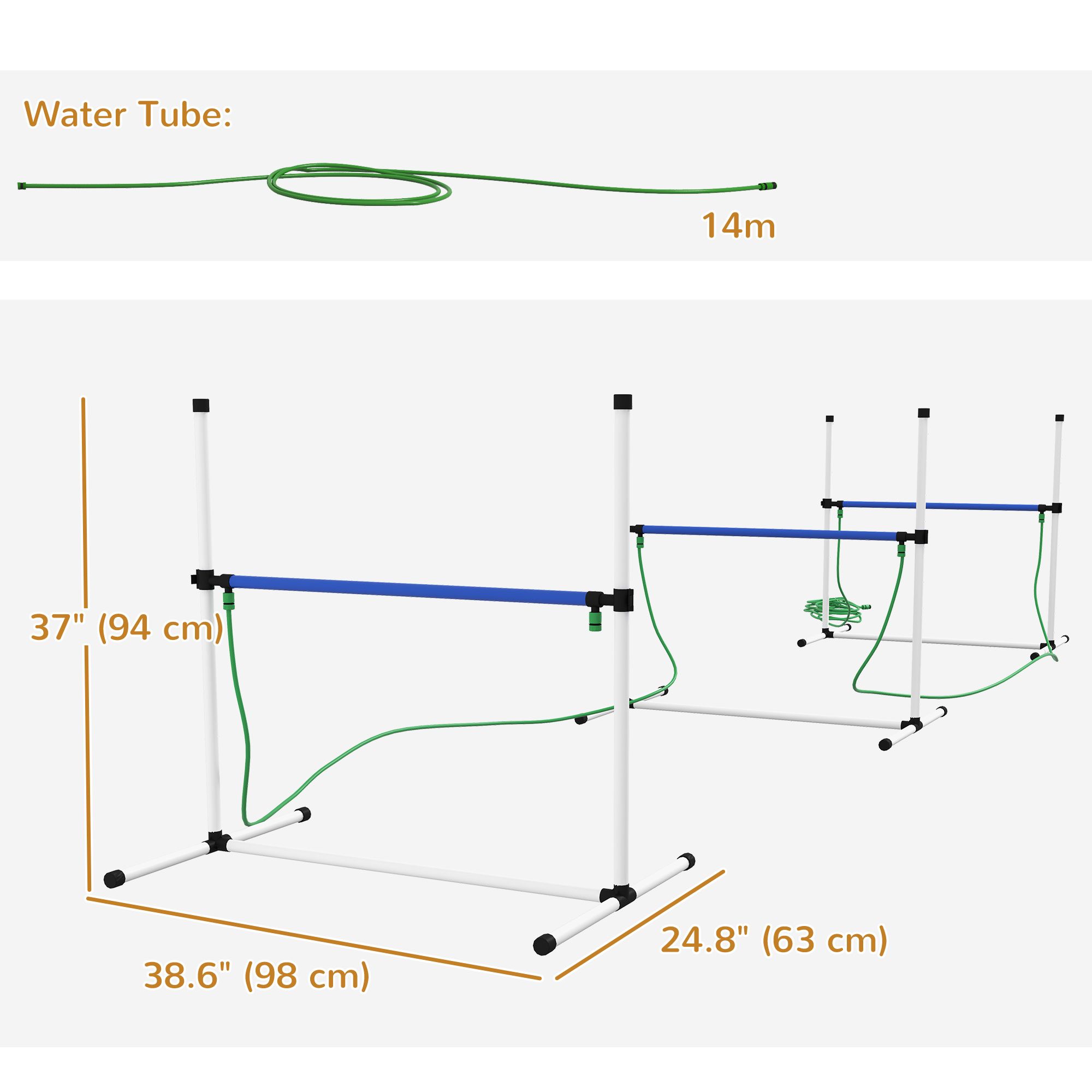 Unleash the fun and excitement with the PawHut Pet Agility Set! This four-piece dog agility equipment set, including three adjustable hurdles, a whistle, and a 600D carry bag, offers endless combinations for varied agility projects. With a 45.9' (14 m) water tube for refreshing water spray, it's suitable for hot weather training. Easy to carry and set up on flat ground, it's a must-have for any dog agility enthusiast.