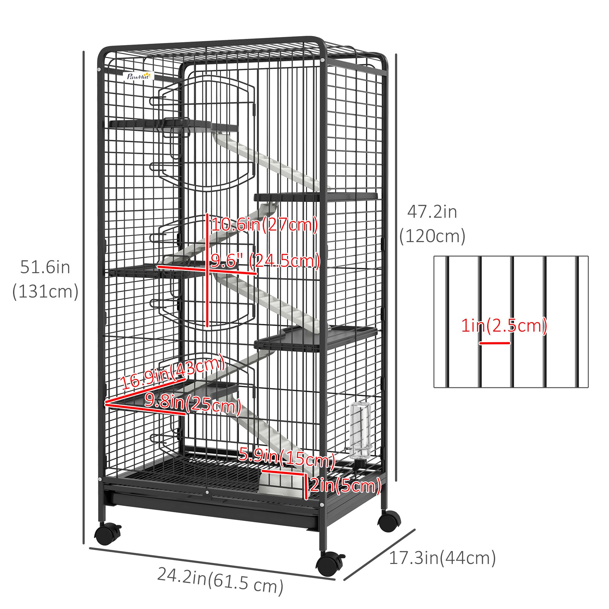 Home > Rolling Small Animal Cage 51.6" Pet Rabbit Ferret Playpen, Animal Supply Kit Metal Black for Bunny, Pet Mink, Chinchilla