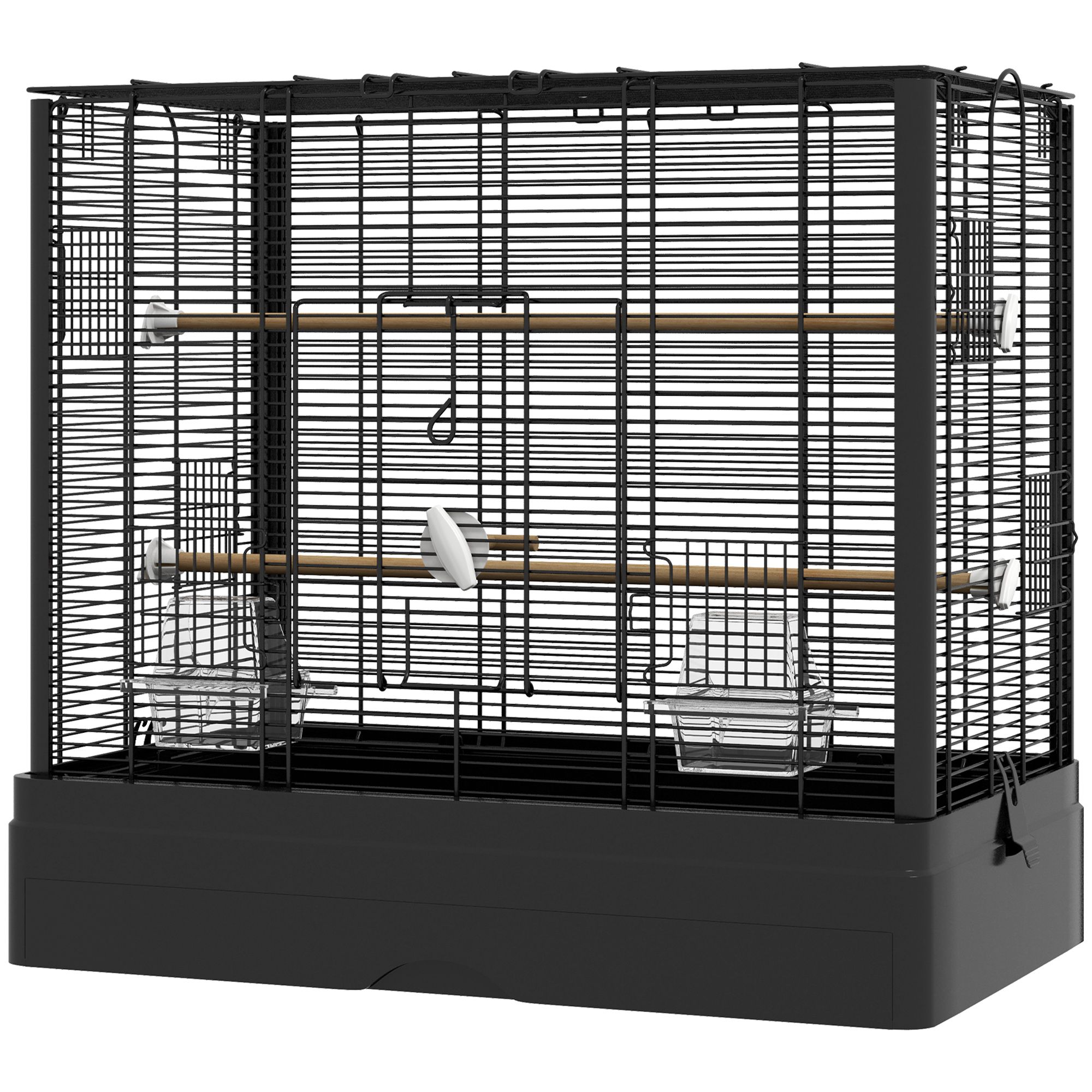 22" Bird Cage for Budgie Finches Canaries Love Birds with Wooden Stands, Slide-Out Tray, Handles, Food Containers, Black