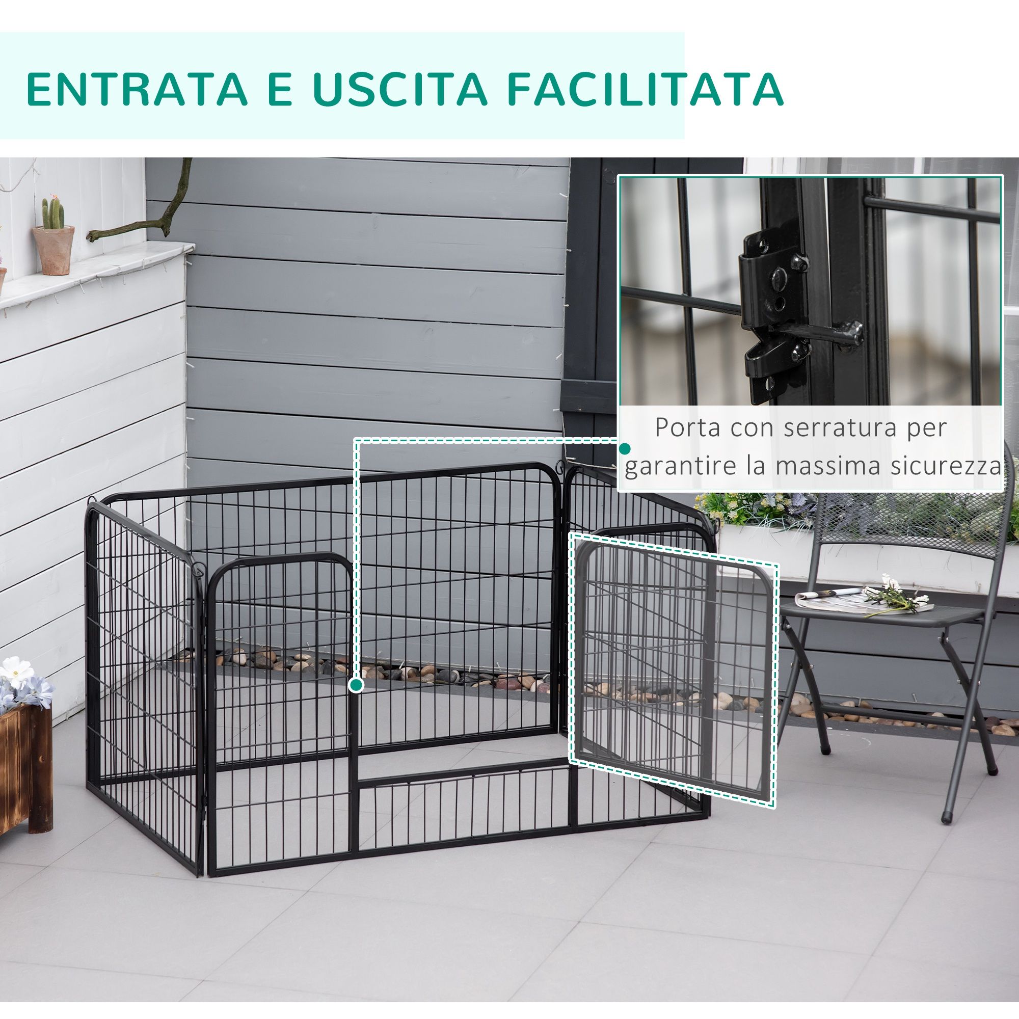 The puppy playpen from PawHut is composed of 4 panels which can be changed at will according to the layout of the home. Equipped with a door to facilitate pets in and out, and lock latch is set to protect the safety of pets. The spacious space for pet rest and exercise. It is a convenient and practical pet enclosure that can be applied to both indoor and outdoor activities. You can use it to restrict your pet's activity area or to separate different pets. A good choice for your pets!
