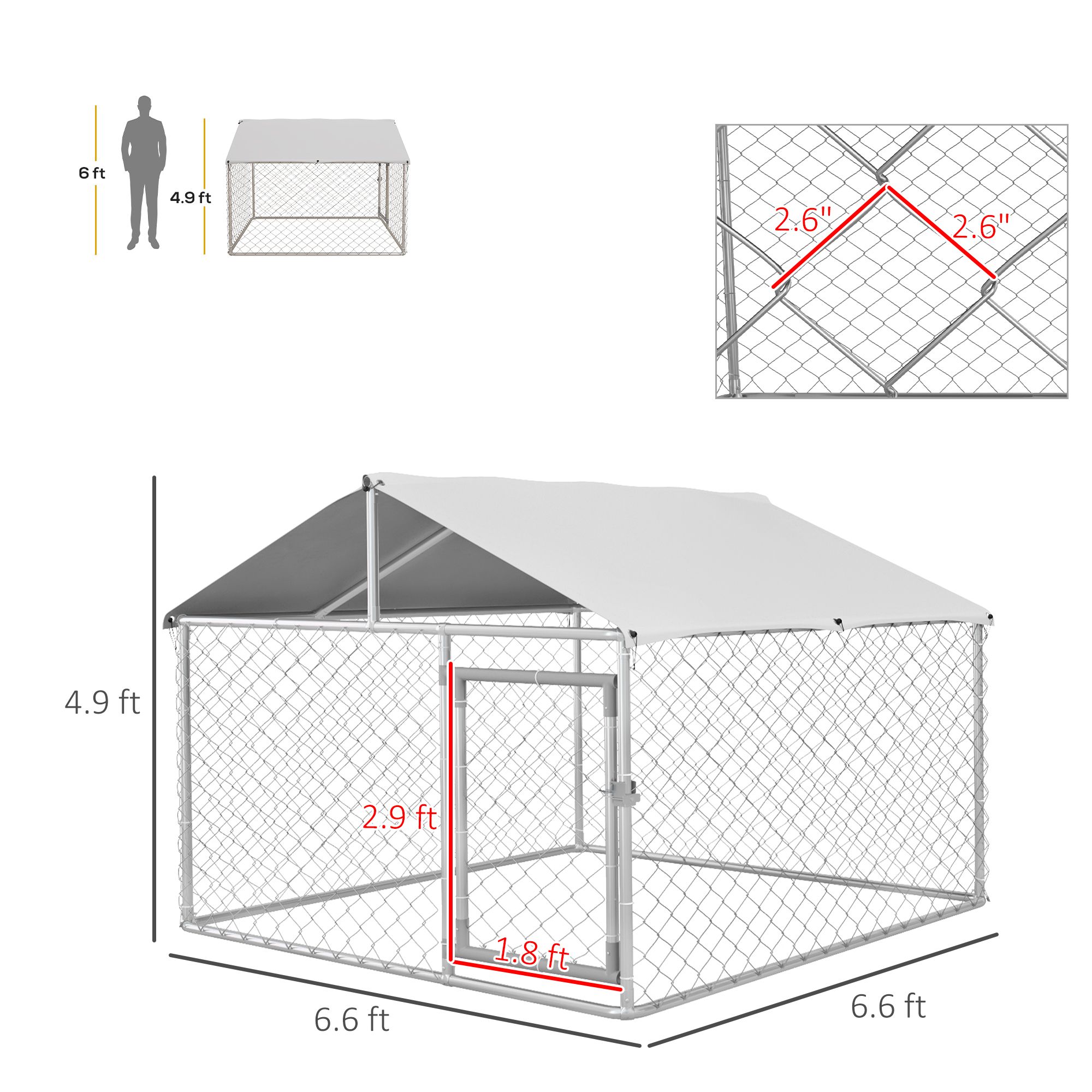 6.6' x 6.6' x 4.9' Dog Kennel Outdoor for Small Medium Dogs with Waterproof Roof, Silver 6.6' x 6.6' x 4.9' Dog Kennel Outdoor for Small Medium Dogs with Waterproof Roof, Silver 6.6' x 6.6' x 4.9' Dog Kennel Outdoor for Small Medium Dogs with Waterproof Roof, Silver 6.6' x 6.6' x 4.9' Dog Kennel Outdoor for Small Medium Dogs with Waterproof Roof, Silver 6.6' x 6.6' x 4.9' Dog Kennel Outdoor for Small Medium Dogs with Waterproof Roof, Silver 6.6' x 6.6' x 4.9' Dog Kennel Outdoor for Small Medium Dogs with Waterproof Roof, Silver 6.6' x 6.6' x 4.9' Dog Kennel Outdoor for Small Medium Dogs with Waterproof Roof, Silver
