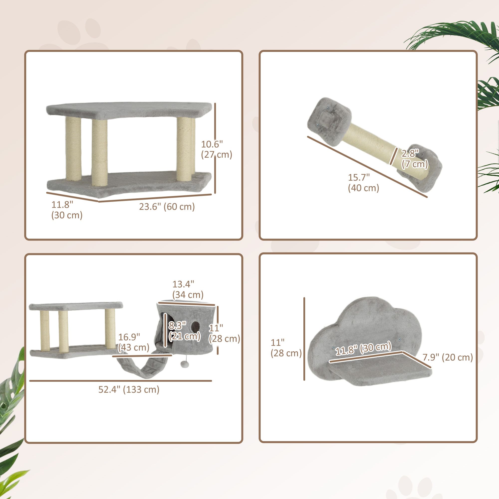 Wall Mounted Cat Shelves with Scratching Post, Ladder, Condo, Jumping Platforms, Light Grey