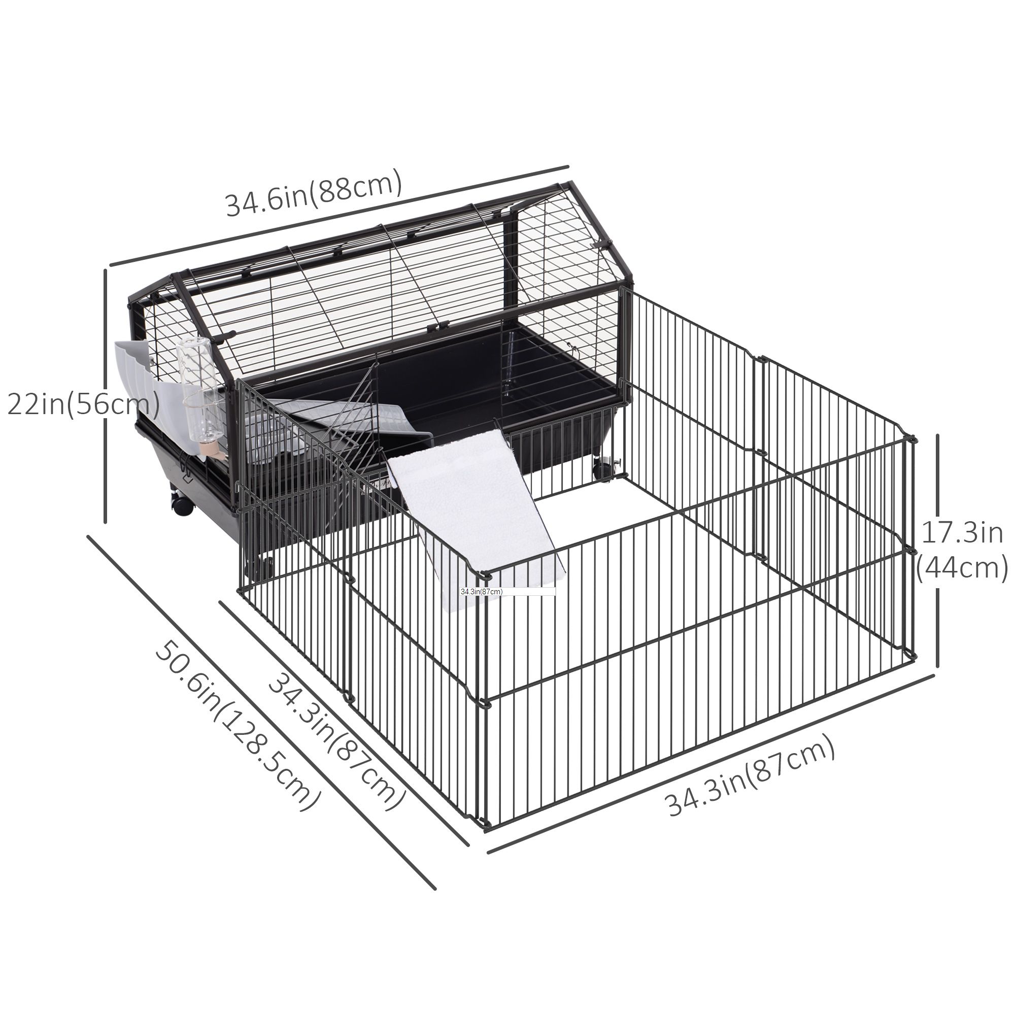 Metal Small Animal Cage, Rabbit Cage for Guinea Pig Chinchilla Hedgehog Bunny with Removable Wheels and Foldable Detachable Run Fence