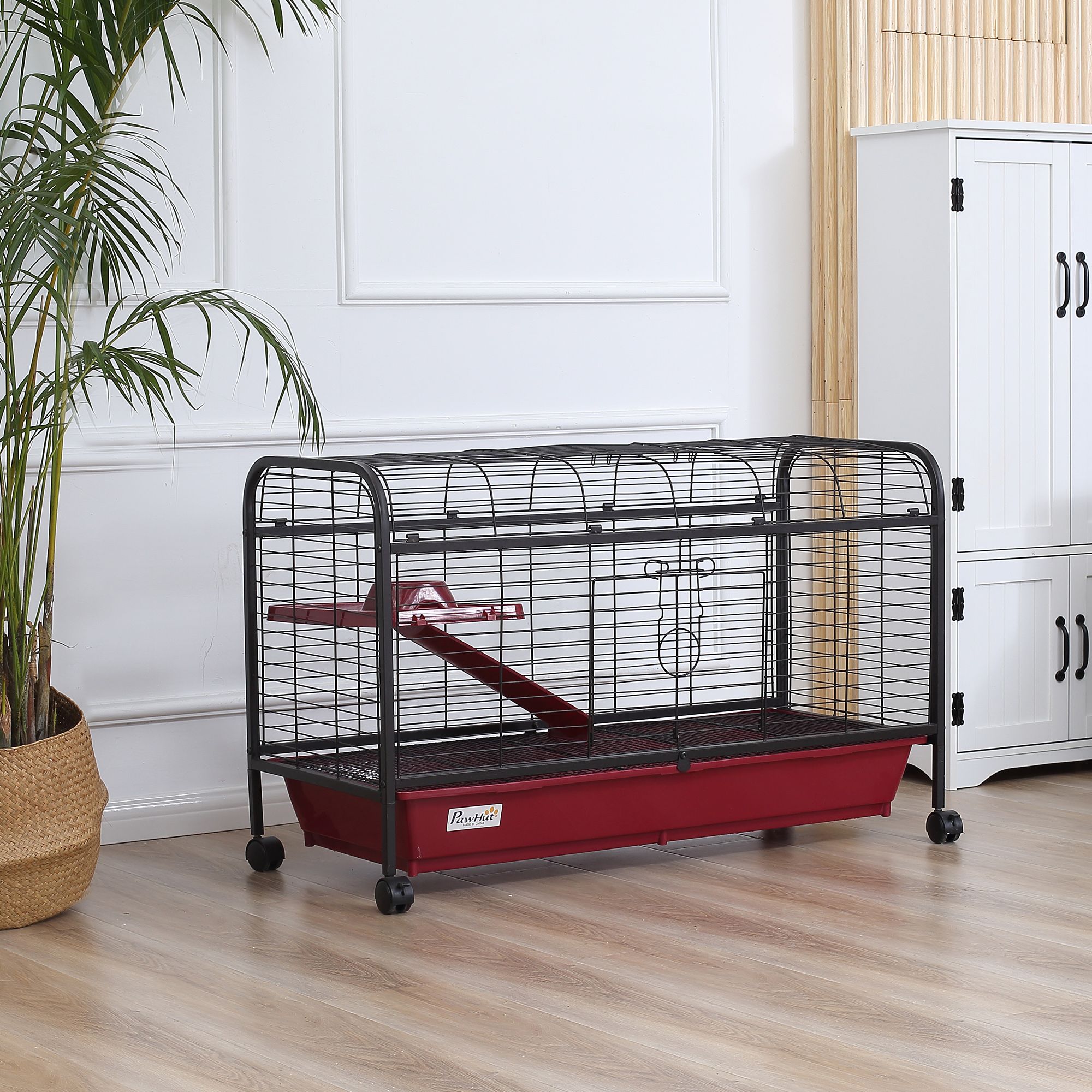 • - Mobile Small Animal Cage: PawHut's small animal habitat measures 48" L x 23.25" W x 28.75" H to provide a cozy home for your pet rabbit, ferret, or other animal. Note: Not suitable for hamsters and rats.
