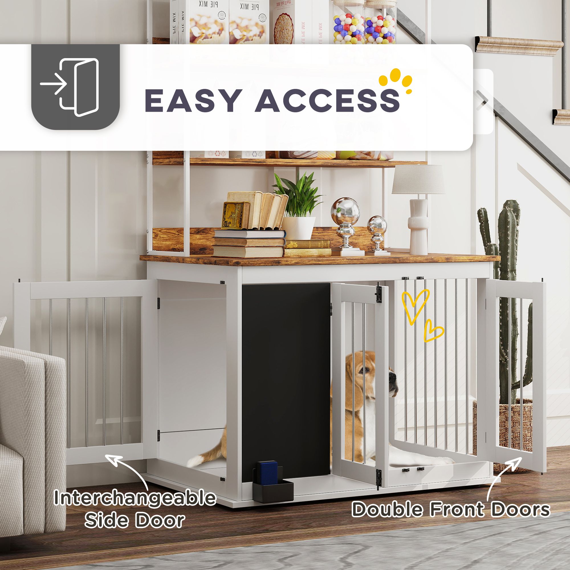 • - Versatile Access: Our corner dog crate features three doors, including a double front door and a configurable side door, enhancing accessibility and fitting effortlessly into various room layout