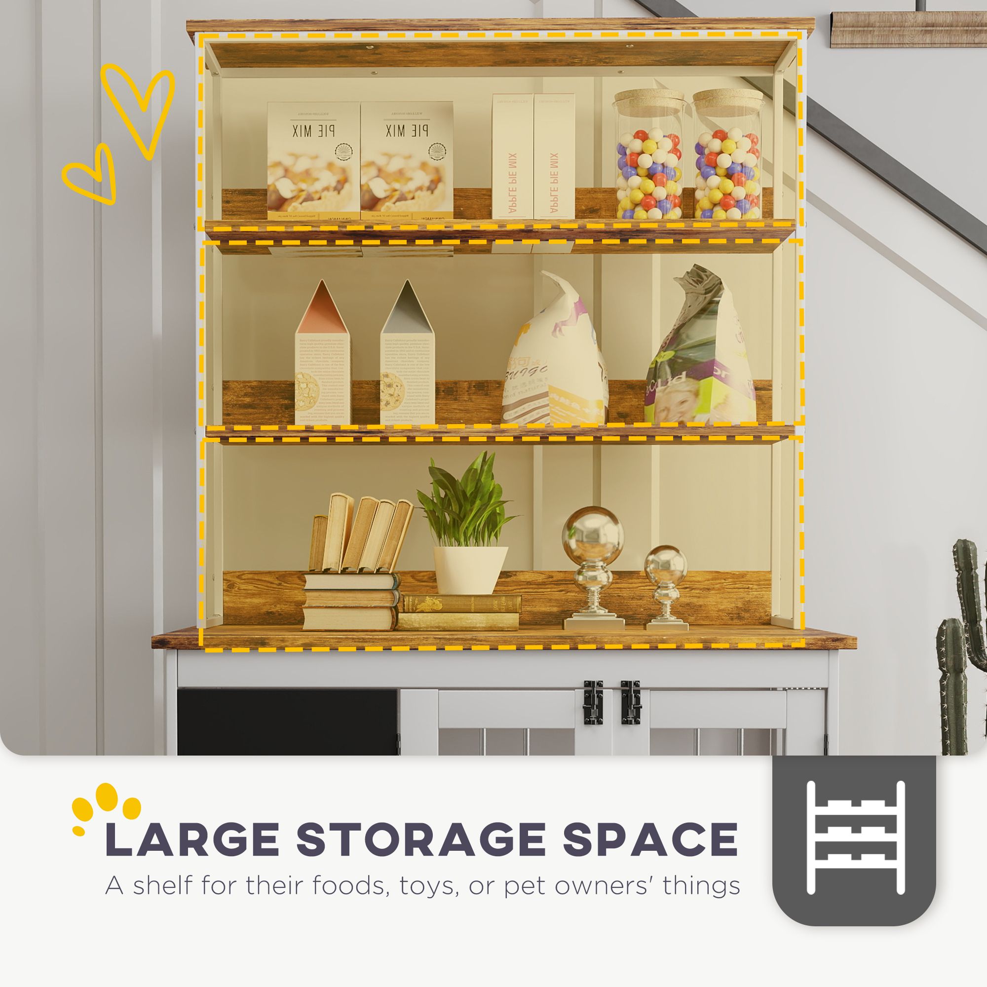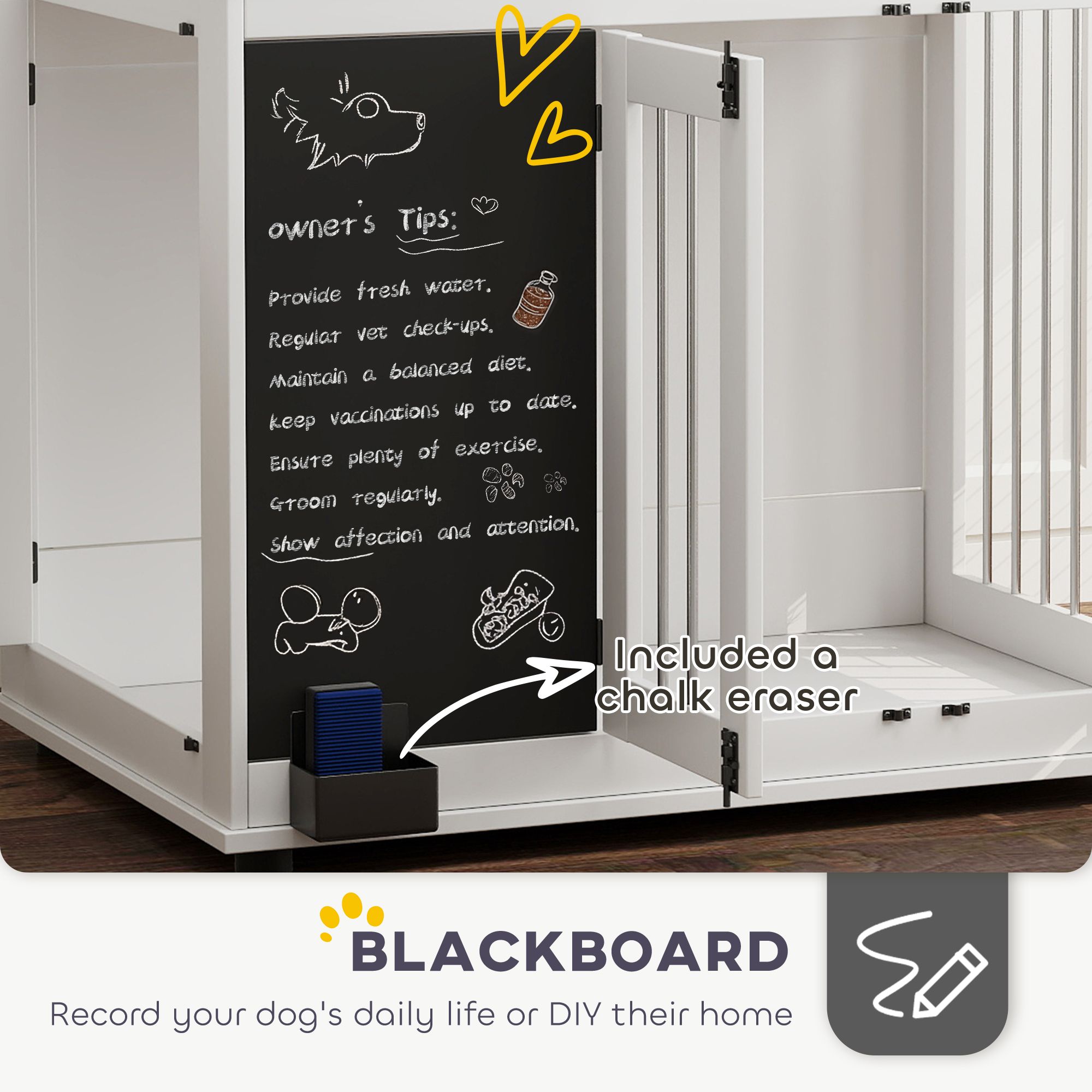 • - Creative & Spacious: Equipped with a top shelf for storage and a decorative blackboard, this dog kennel furniture offers ample space for pet supplies, notes, and personalization