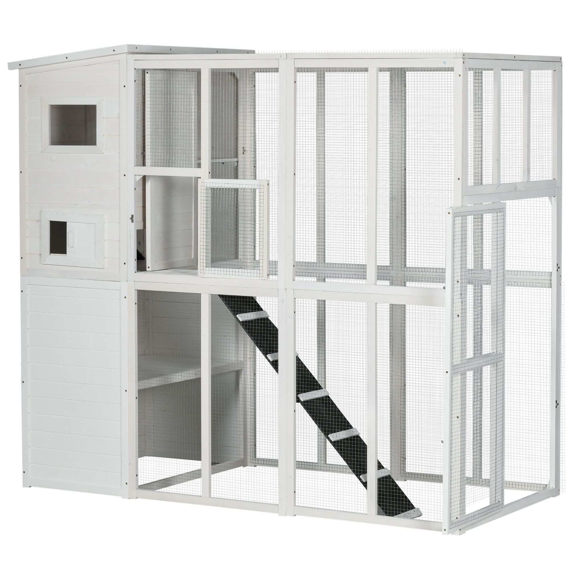 68.7" H Cat Cage Large Wooden Outdoor Cat House with Large Run for Play, Catio for Lounging, and Condo Area for Sleeping, White 68.7" H Cat Cage Large Wooden Outdoor Cat House with Large Run for Play, Catio for Lounging, and Condo Area for Sleeping, White 68.7" H Cat Cage Large Wooden Outdoor Cat House with Large Run for Play, Catio for Lounging, and Condo Area for Sleeping, White 68.7" H Cat Cage Large Wooden Outdoor Cat House with Large Run for Play, Catio for Lounging, and Condo Area for Sleeping, White 68.7" H Cat Cage Large Wooden Outdoor Cat House with Large Run for Play, Catio for Lounging, and Condo Area for Sleeping, White 68.7" H Cat Cage Large Wooden Outdoor Cat House with Large Run for Play, Catio for Lounging, and Condo Area for Sleeping, White 68.7" H Cat Cage Large Wooden Outdoor Cat House with Large Run for Play, Catio for Lounging, and Condo Area for Sleeping, White