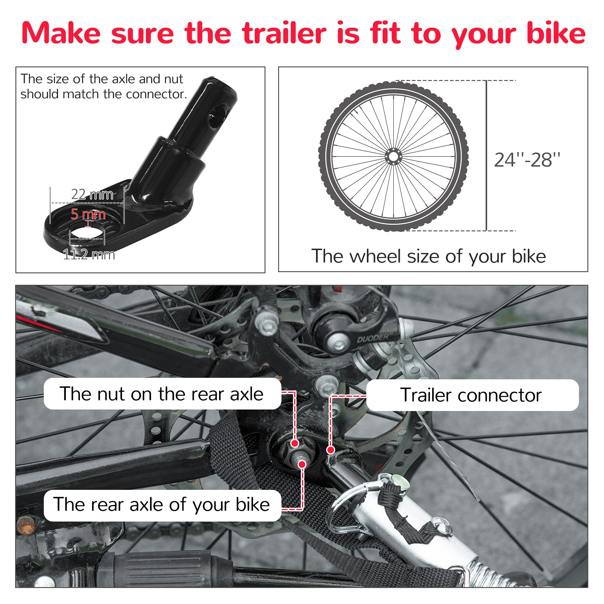 • • Suitable Bike Wheel Diameter: 24"-28"