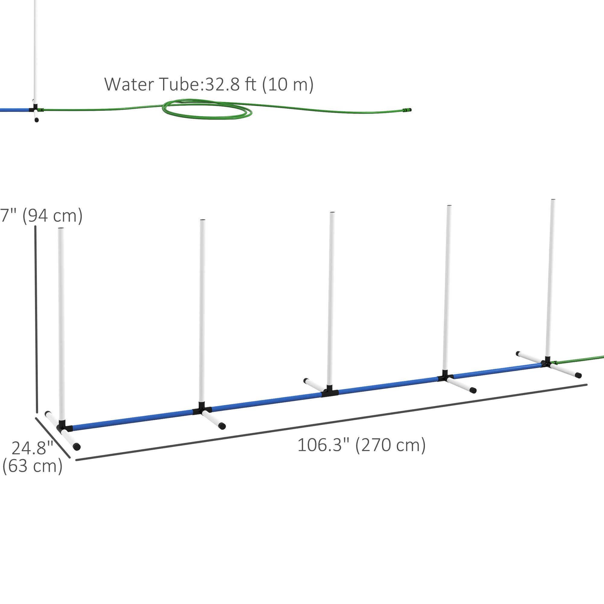 • • Weave Poles: 106.3" L x 24.8" W x 37" H (270L x 63W x 94H cm)