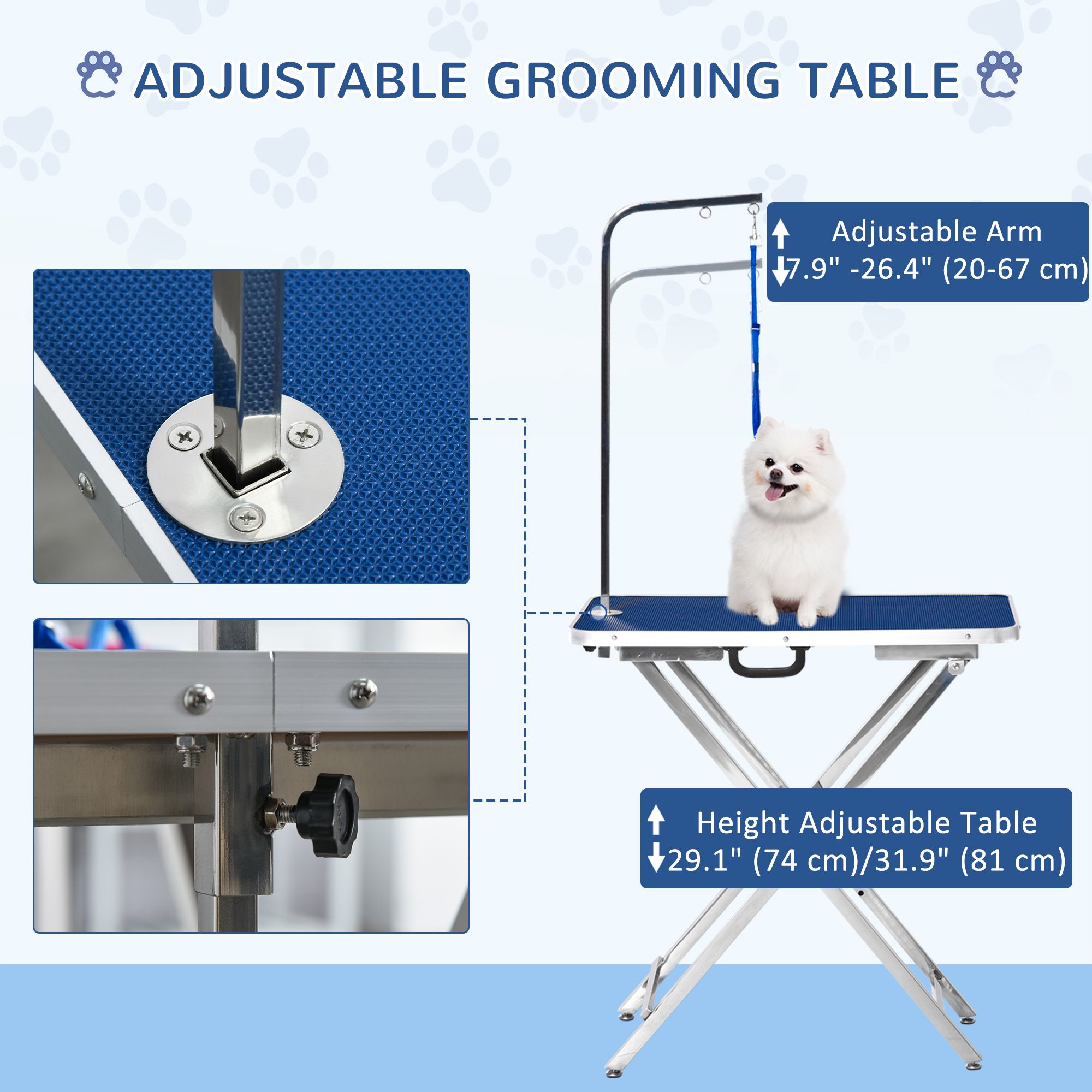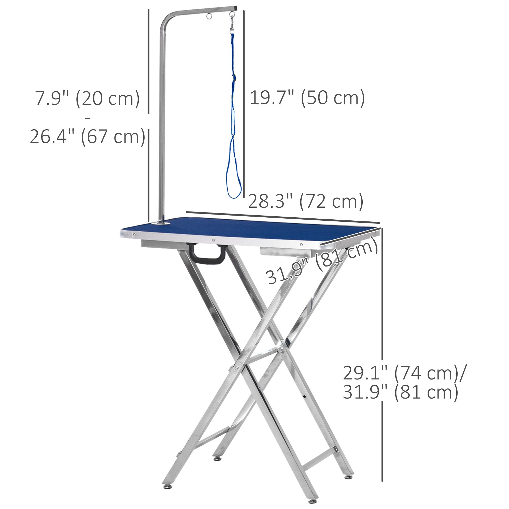28" Foldable Dog Grooming Table with Adjustable Arm, Non-Slip Surface for Medium Small Dogs, Cats, Blue