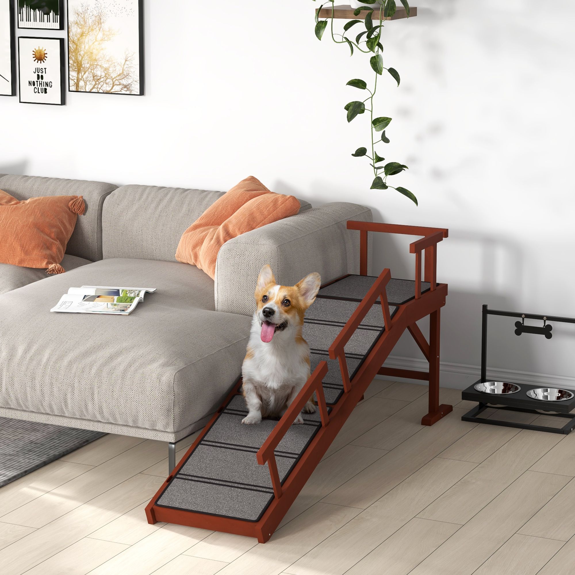 • - Ramp with Non-Slip Carpet: Give your dog a safe and confident stride. Our dog ramp includes a non-slip carpet surface to provide secure footing as your pets travel to the couch.