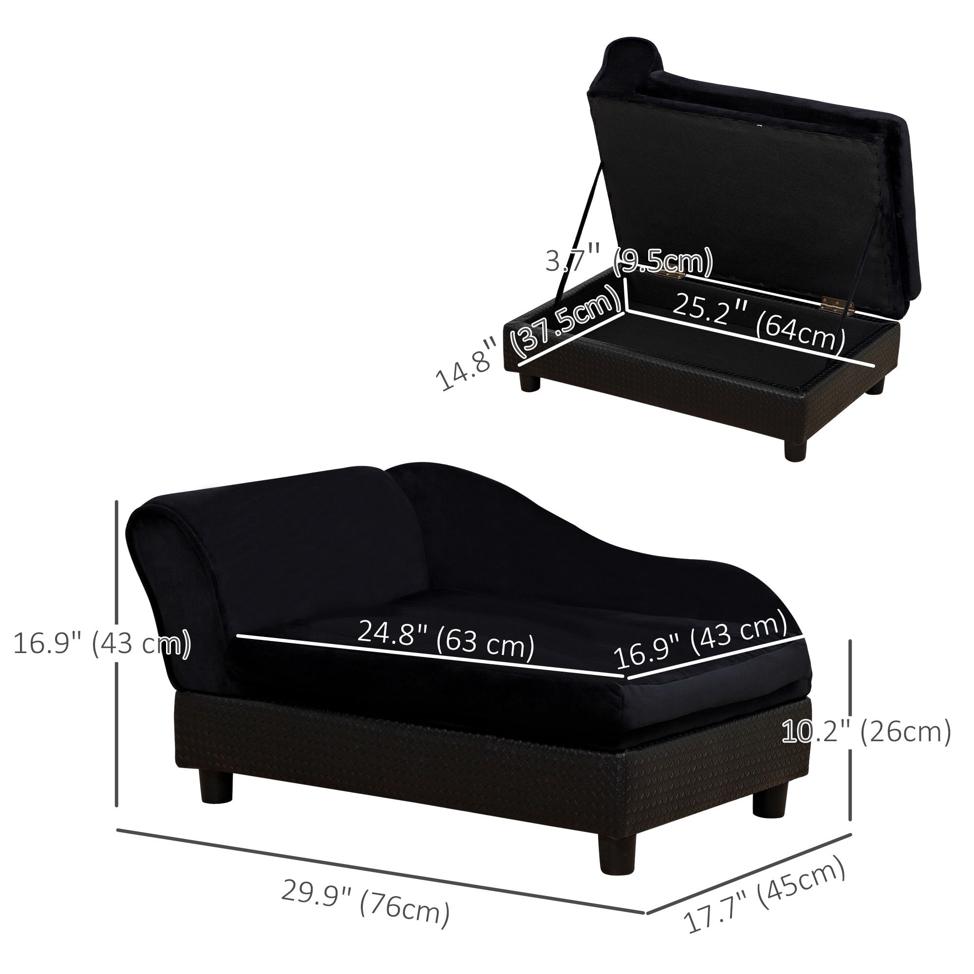 Pet Sofa Dog Couch Chaise Lounge Pet Bed with Storage Function Small Sized Dog Various Cat Sponge Cushioned Bed Lounge, Black