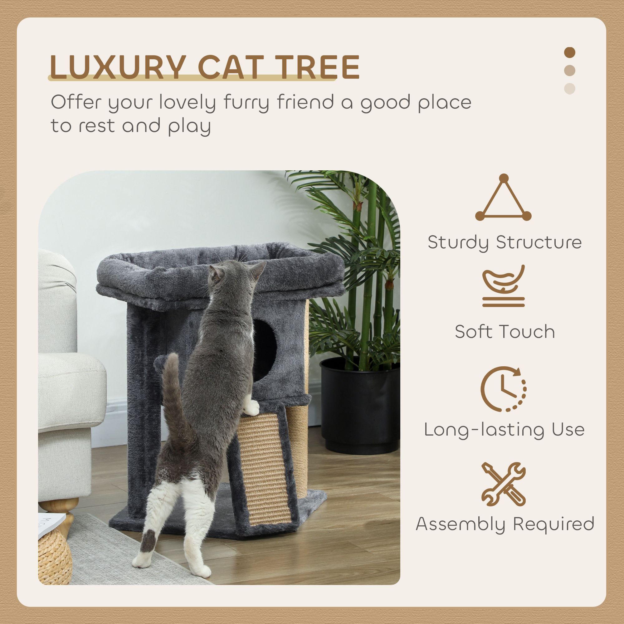 With this PawHut small cat tower, your pet's daily life won't be the same. If they want to scratch, climb and play, they can happily do so, thanks to the multiple levels, jute scratching pad and toy ball, which will stop them from climbing and clawing at your furniture. When it's time to rest, they have two options – a top perch, or a private cat house – both are covered in soft plush fabric for extra snugness. With this cat tree tower, every day is comfortable.