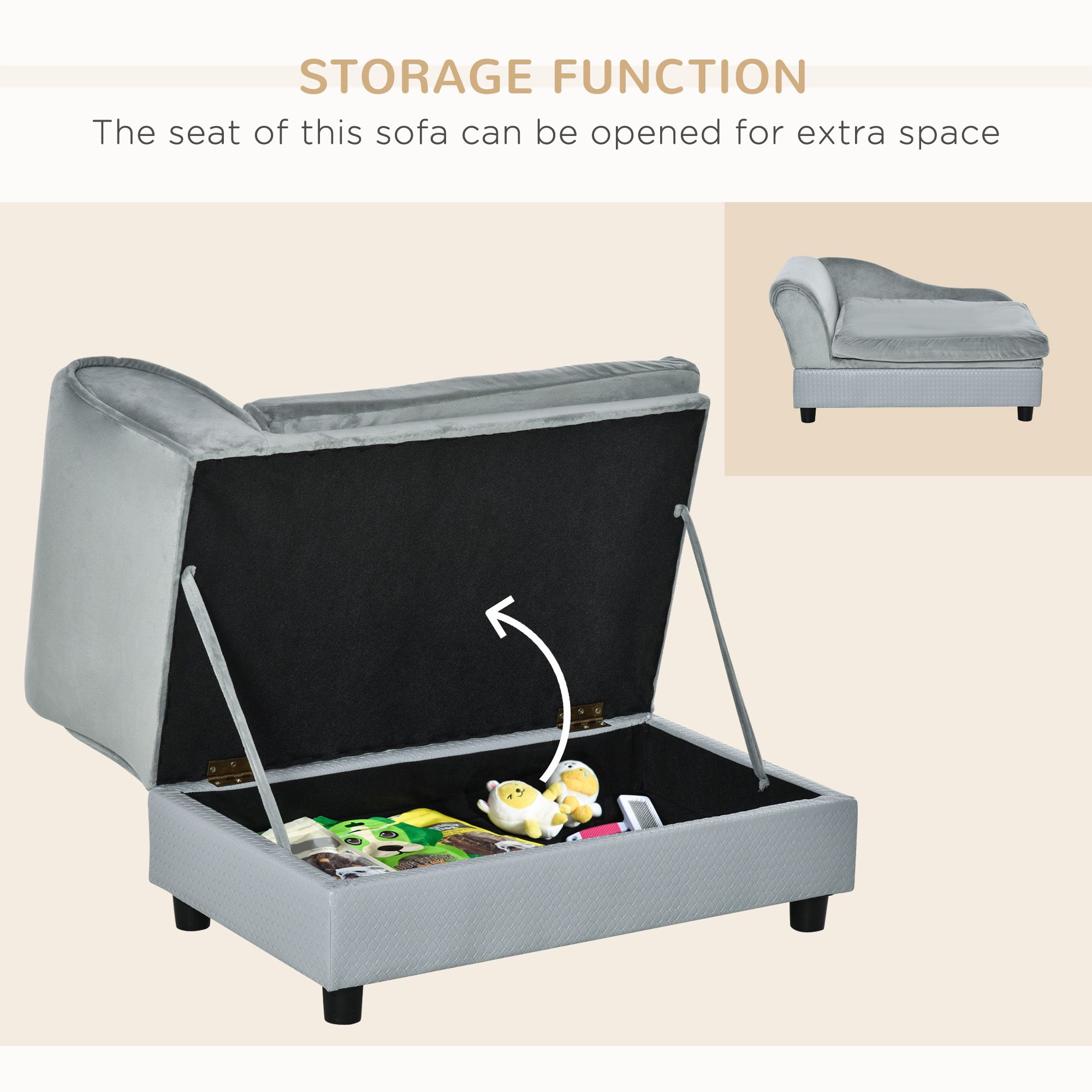 Home > PawHut Luxury Dog Bed for Small Dogs, Hidden Storage, Soft Foam Couch, Modern Pet Furniture, Gray