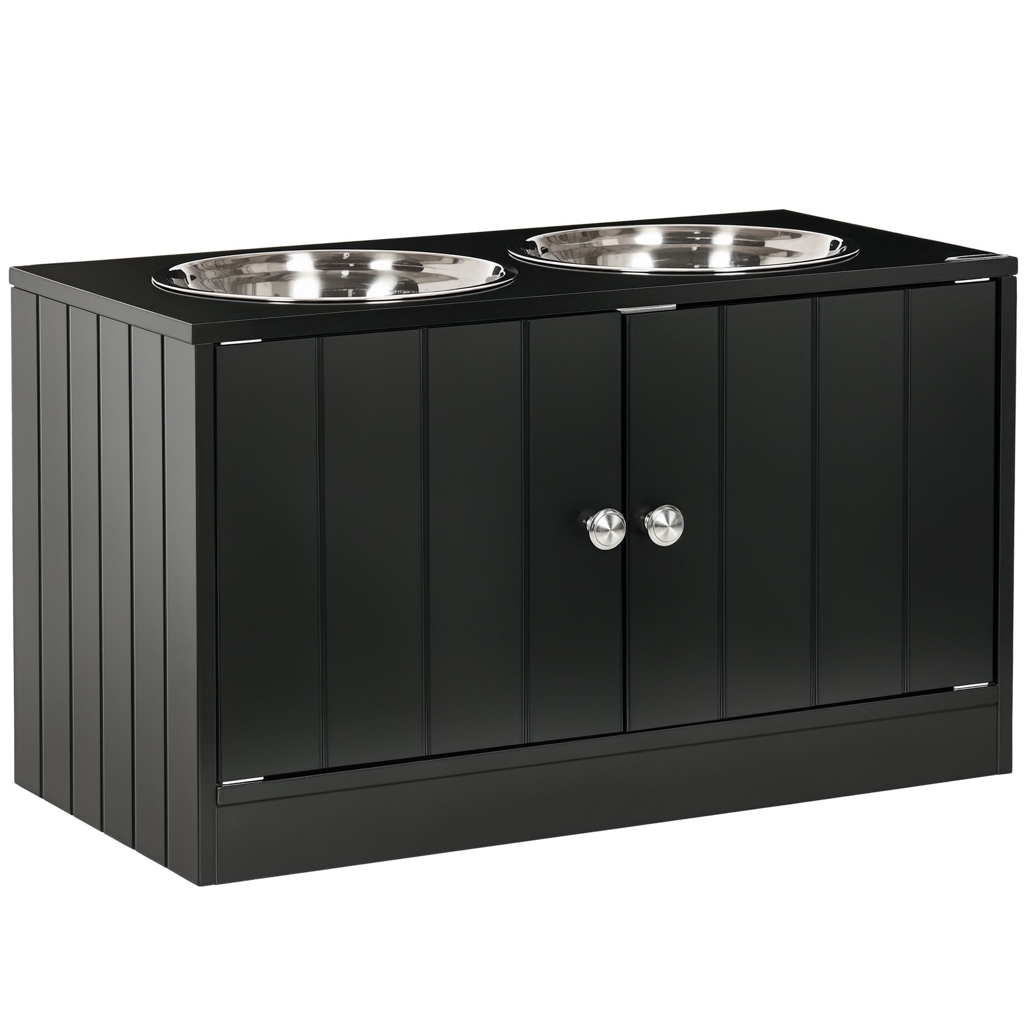 Home > Elevated Dog Bowls for Large Dogs Pet Feeding Station with Stand, Storage, 2 Stainless Steel Food and Water Bowls, Black, 23.6" x 11.8" x 14"