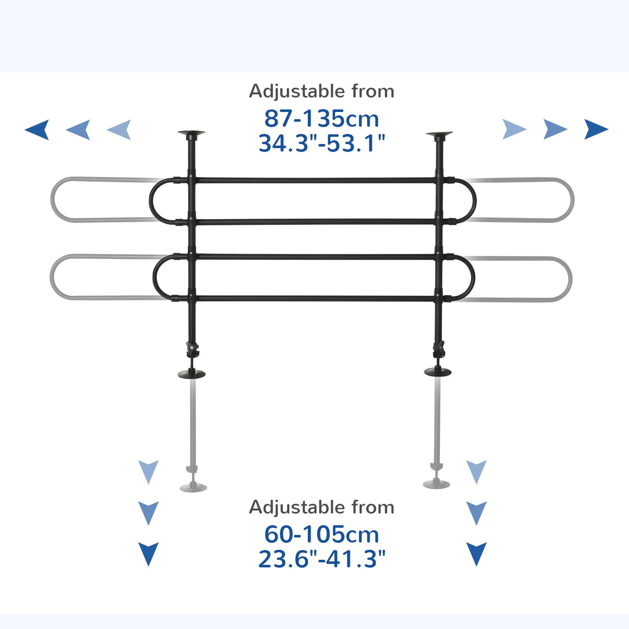 • • Overall Dimension: 34.3" -53.1" W x 2" D x 23.6" -41.3" H (87-135 x 5 x 60-105 cm)