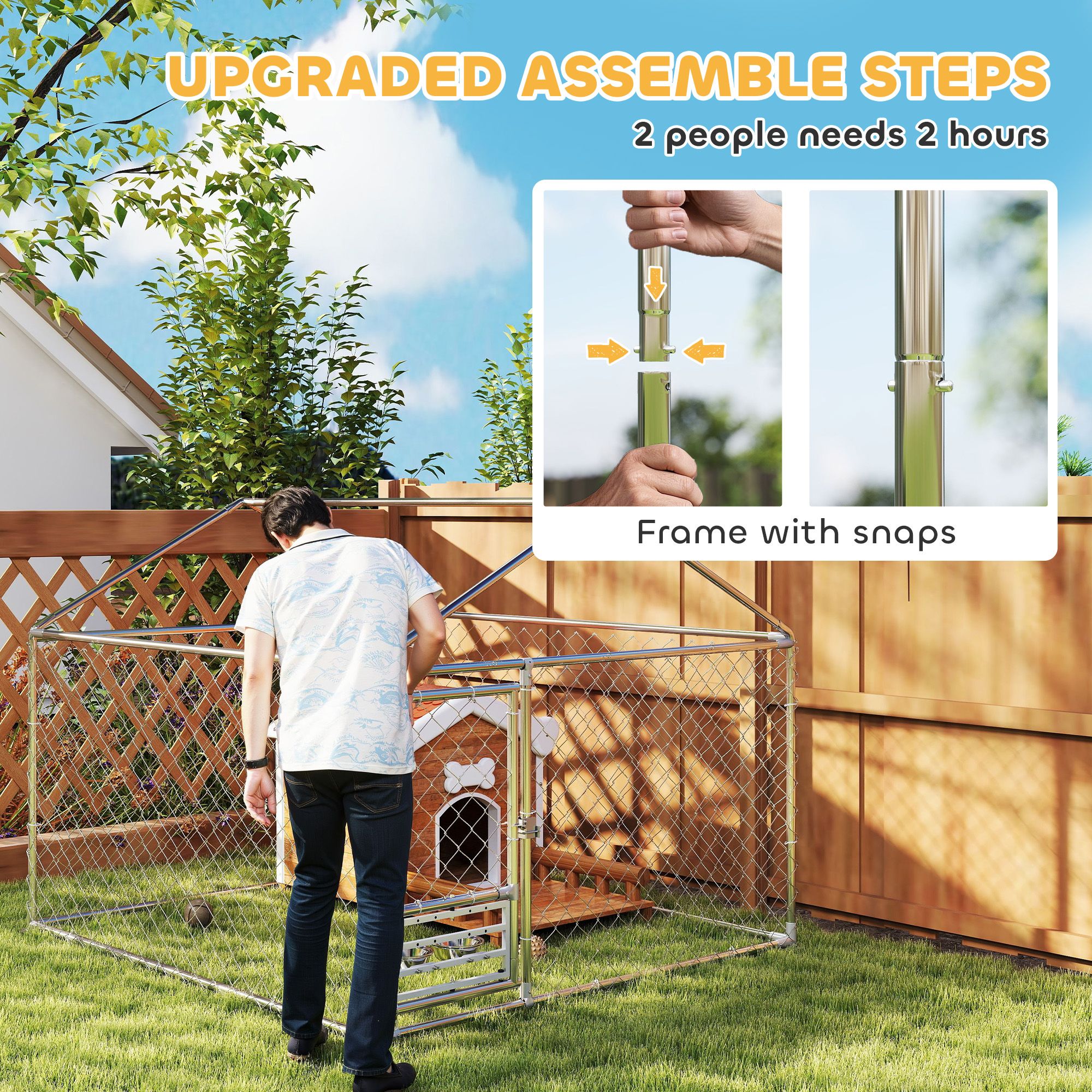 Discover the joy of outdoor fun with the PawHut Outdoor Dog Kennel. Crafted from galvanized metal tubing and strong steel wire mesh, it features an escape-proof lock for added peace of mind. The UV-resistant cover provides shade, keeping your dog cool and comfortable. It is designed for medium-sized dogs shoulder height greater than 9.8"(25 cm) and no more than 44 lbs. (20 kg).